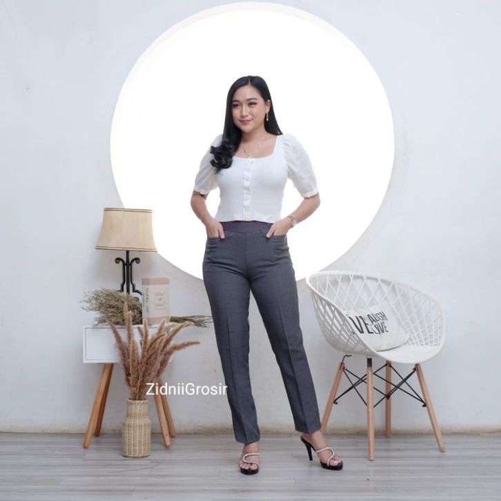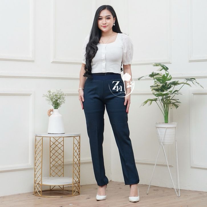Celana kerja Wanita pinggang Karet Celana JUMBO Wanita kualitas premium bisa MELAR HIGHWAISH