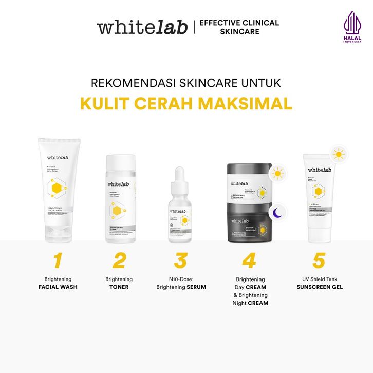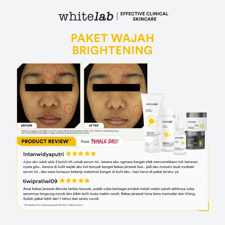Paket Skincare Whitelab 5pcs Brightening Paket Wajah - Facial Wash, Toner, Serum, with Day & Night Cream Paket Skincare