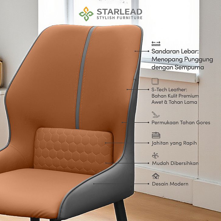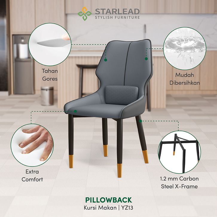 STARLEAD Kursi Makan Kulit Pillowback | Dining Chair | Cafe Chair