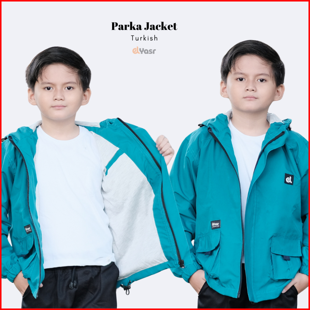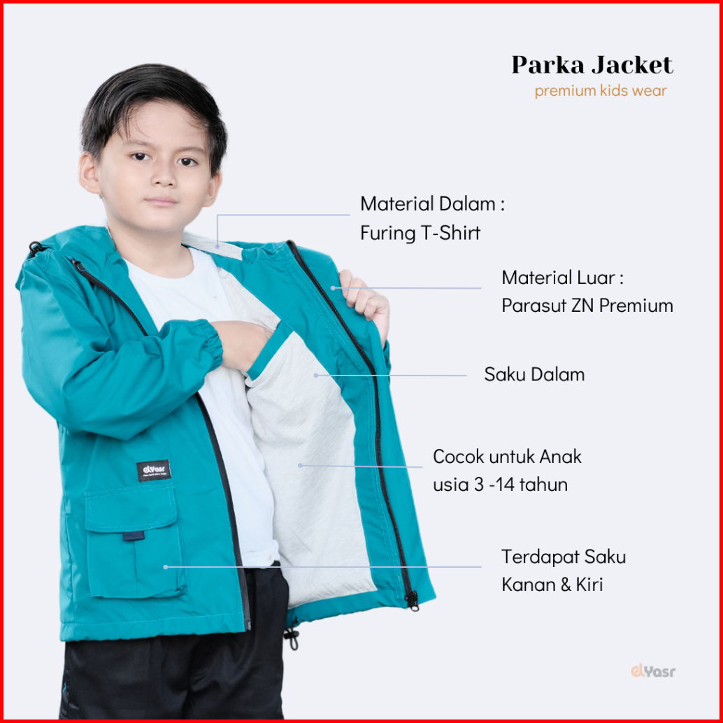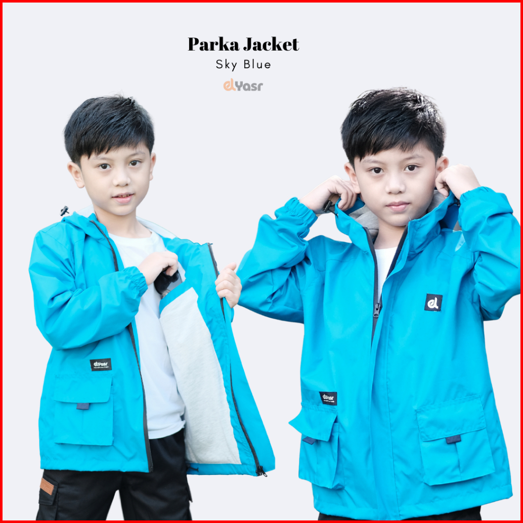 Elyasr - Jaket Anti Air Parka Anak Laki Laki Perempuan Unisex Umur 3-12 Tahun Polos Parasut Tebal