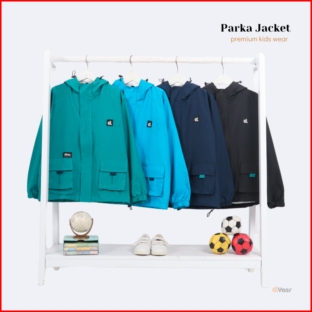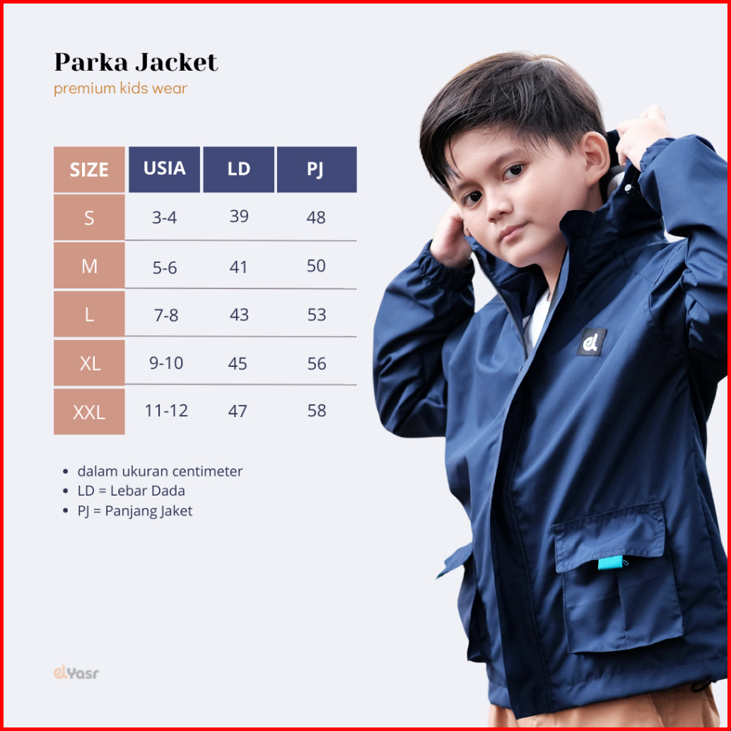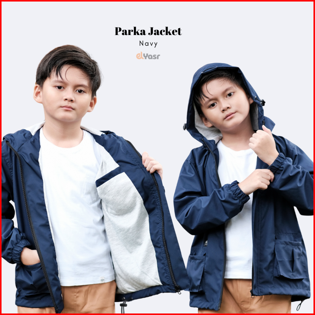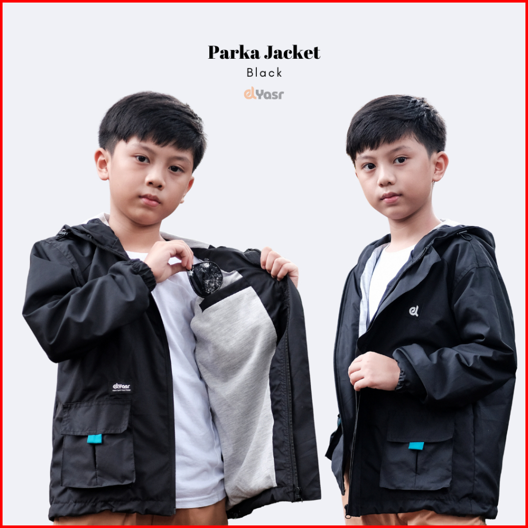 Elyasr - Jaket Anti Air Parka Anak Laki Laki Perempuan Unisex Umur 3-12 Tahun Polos Parasut Tebal