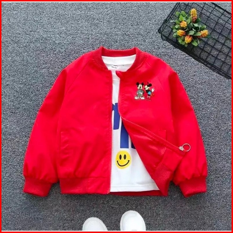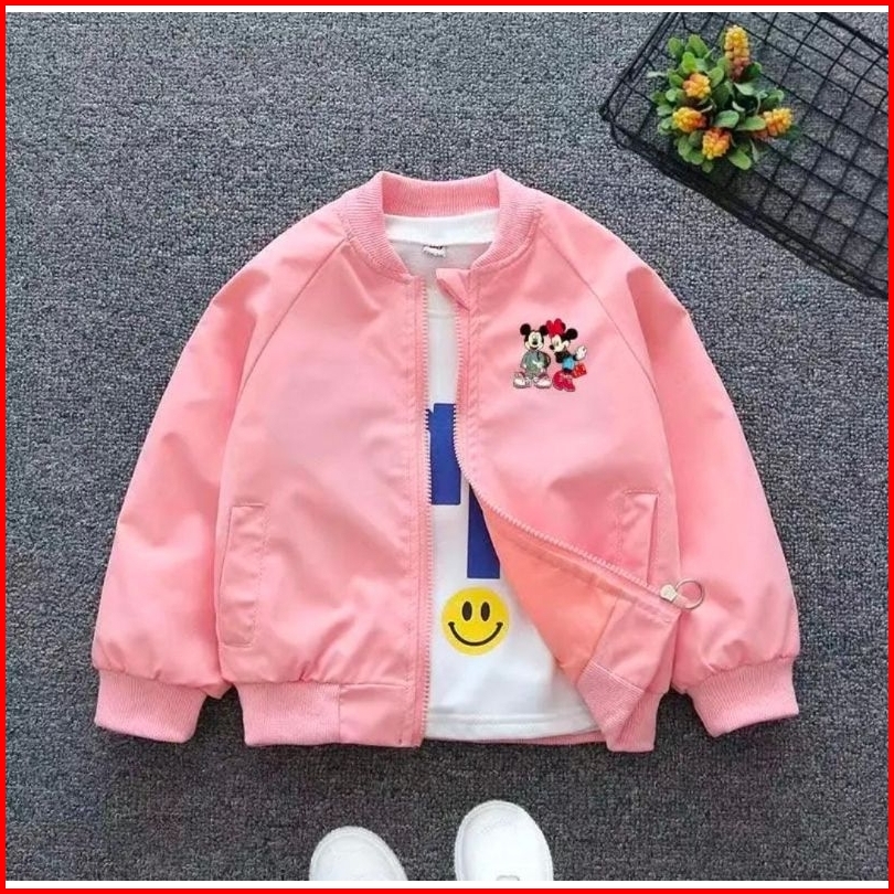 Jacket Bomber Anak Perempuan Terbaru Lucu Gambar Micky Mouse Jaket Bomber Parasut Anak Casual