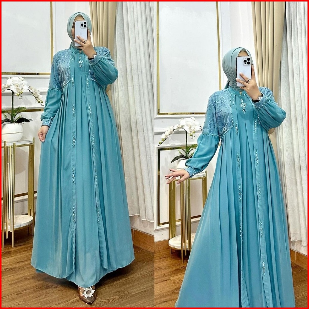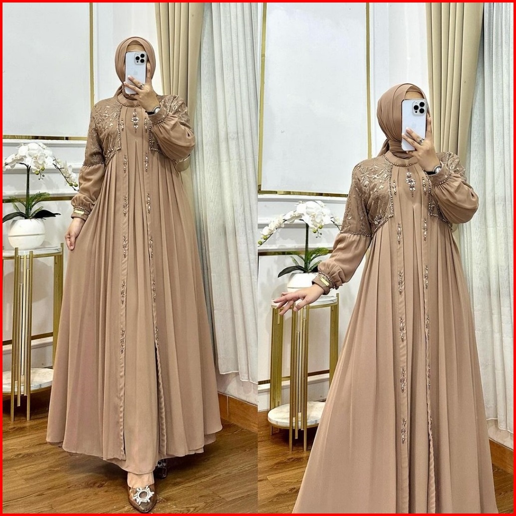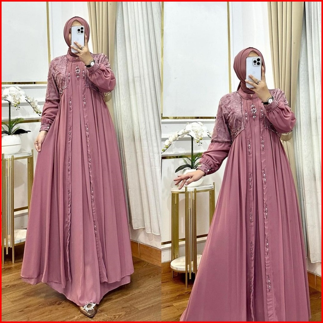 Lanara Maxi Dress Muslim Dewasa Gamis Pesta Mewah Elegan Gamis Abaya Brukat Mix Payet
