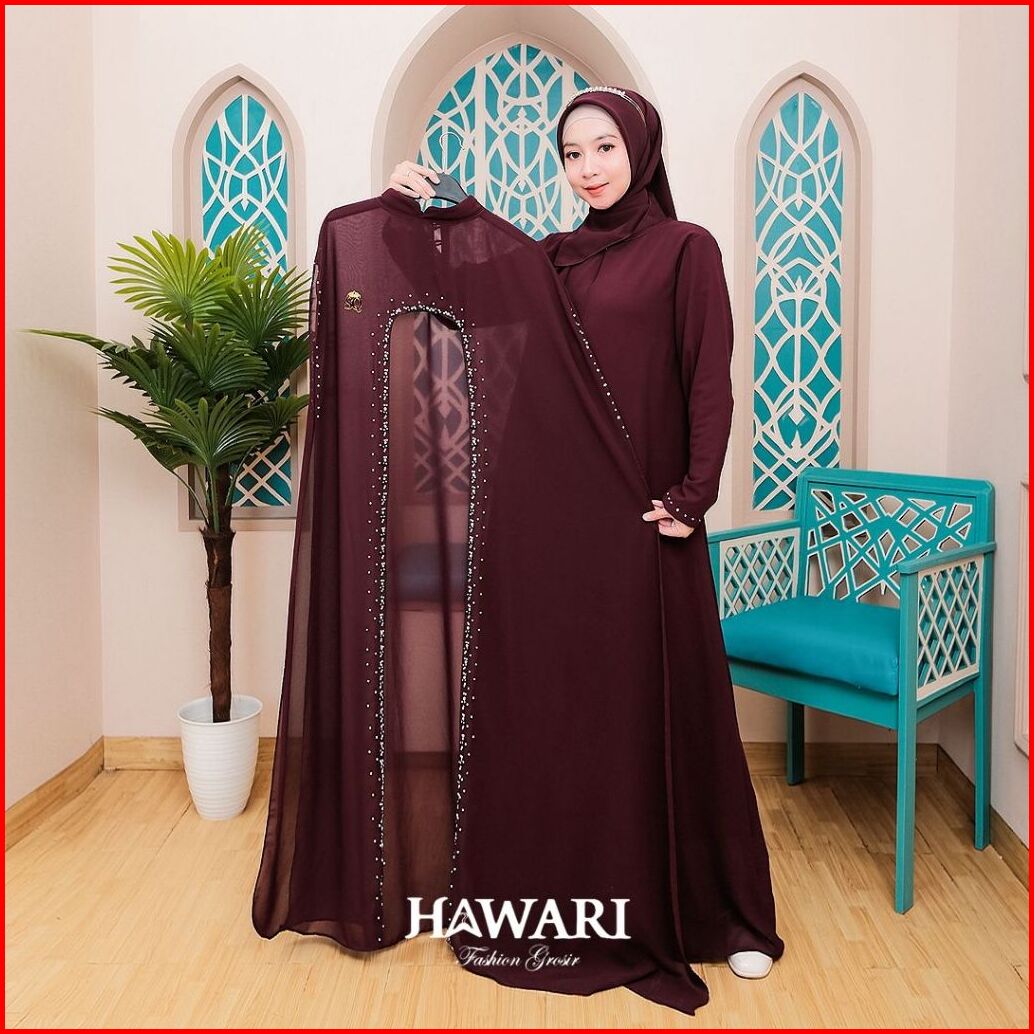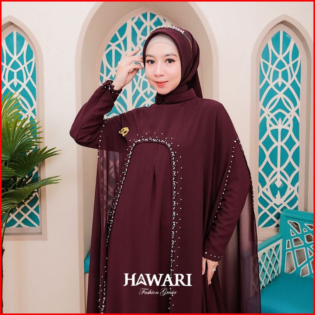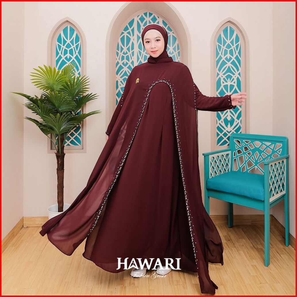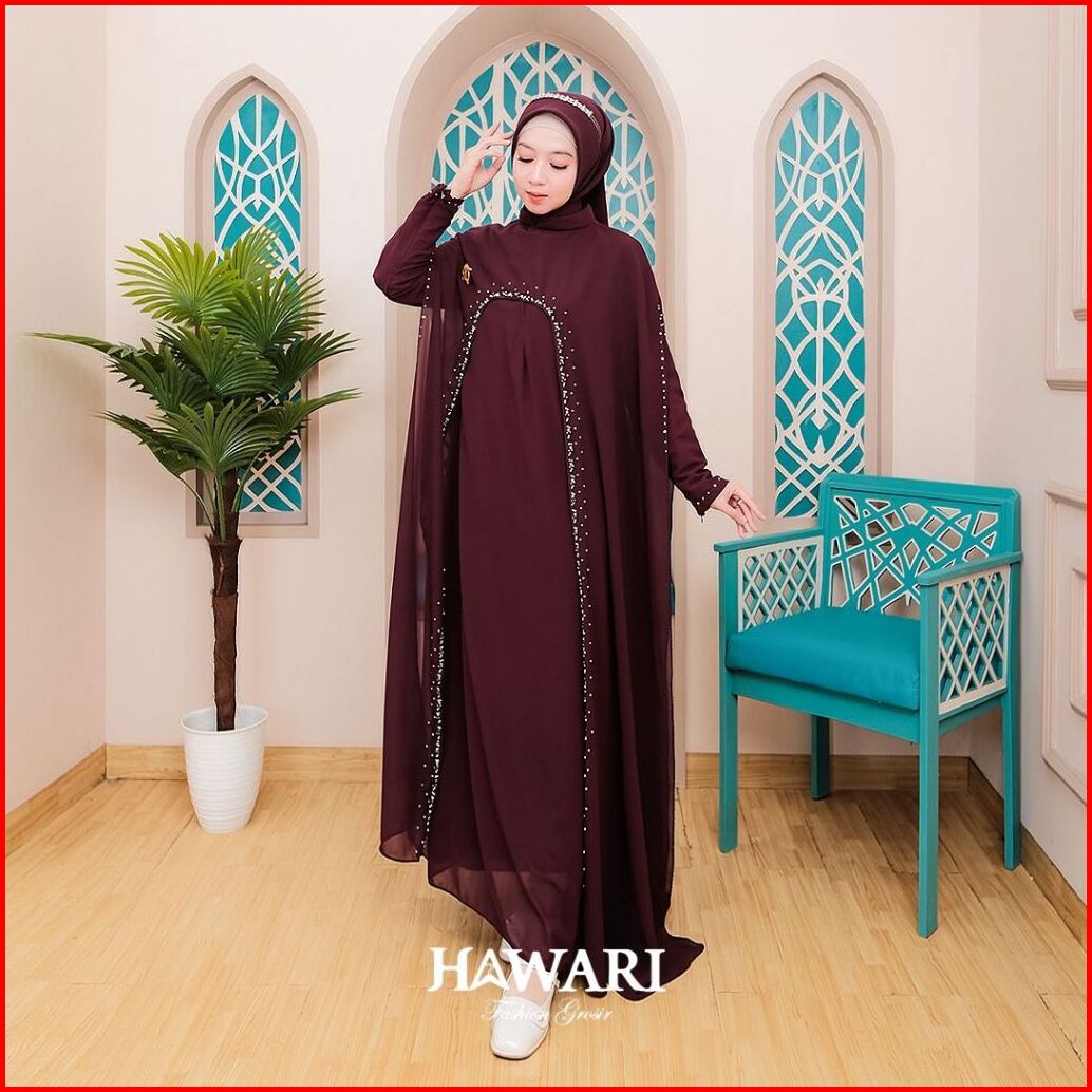 Hawari - Set Hijab Abaya Nadien Series Gamis Muslim Wanita Ceruty Gamis Elegan Aksen Payet