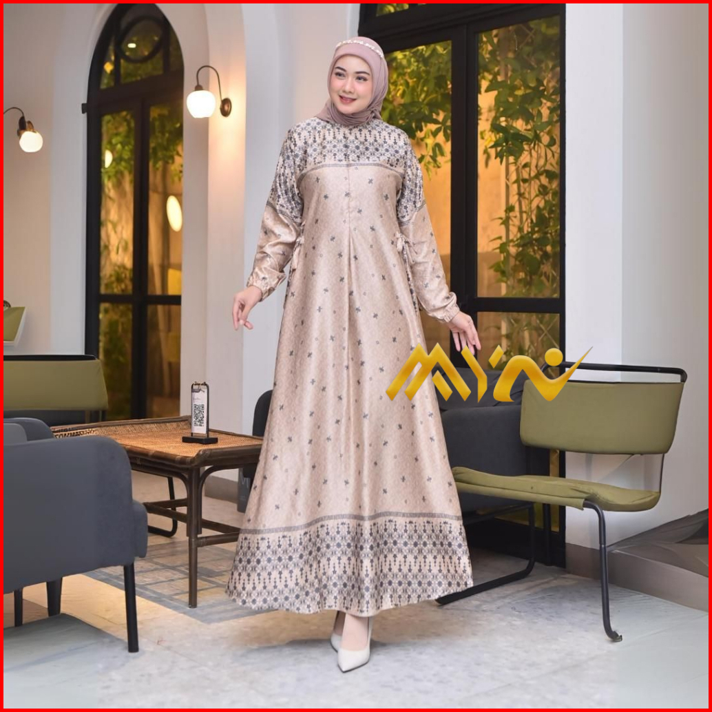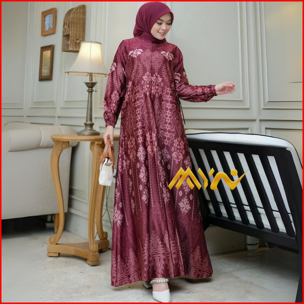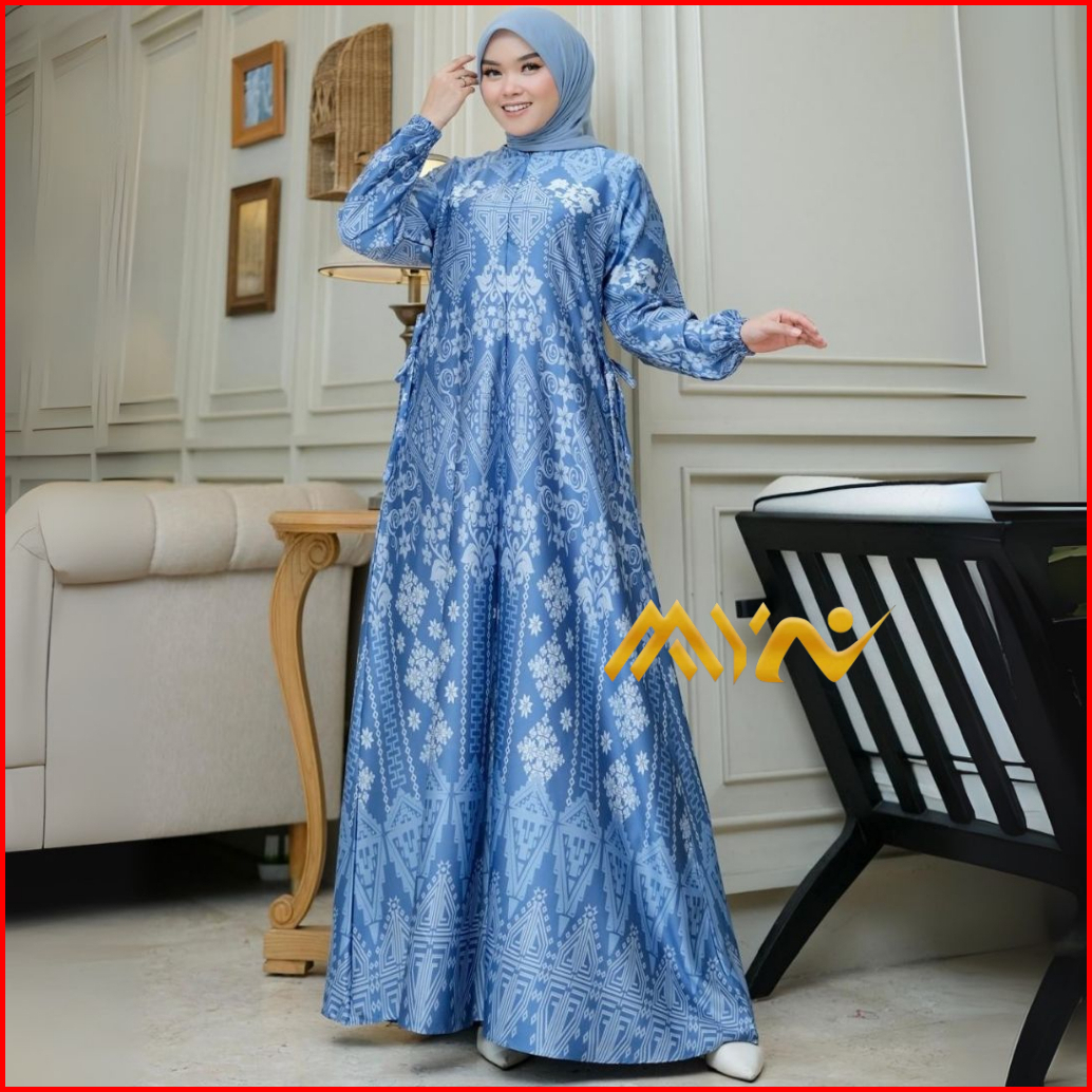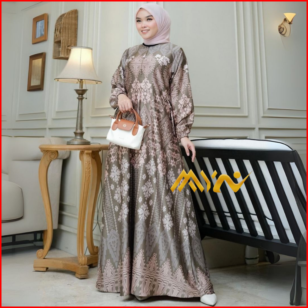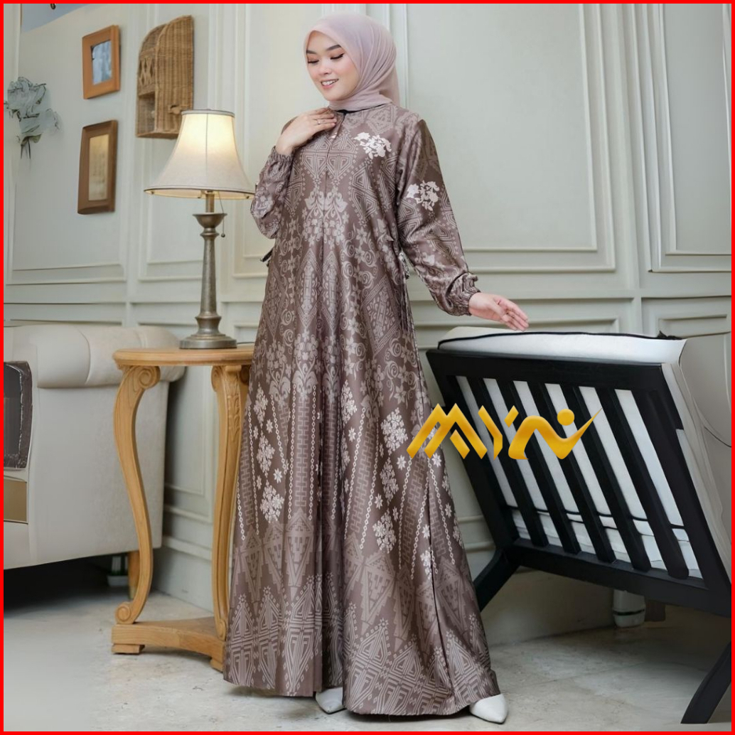 Baju Gamis Dress Armani Silk Digital Pesta Wanita Seragaman Mutif Bungna Bunga Fashion Terbaru Elegan Best Seller Pesta
