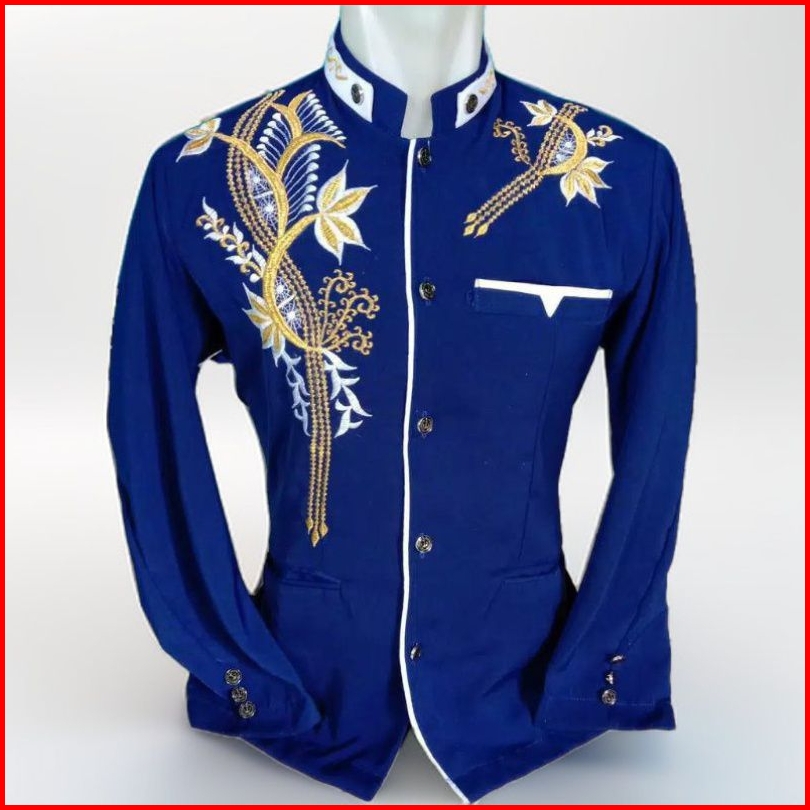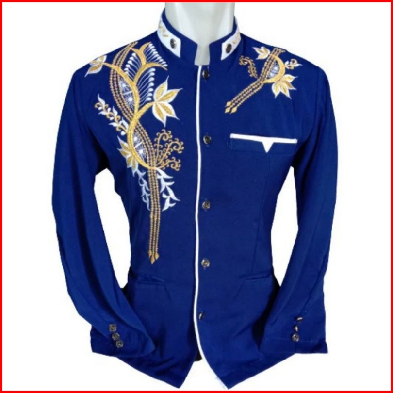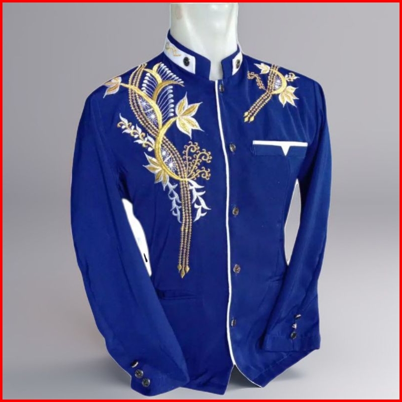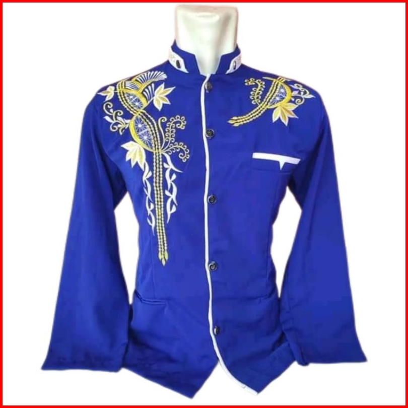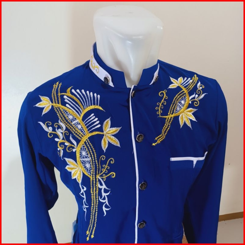 Jasko Bordir Baju Muslim Pria Dewasa Lengan Panjang Jasko Terbaru Jasco Biru Bordir Lis Putih