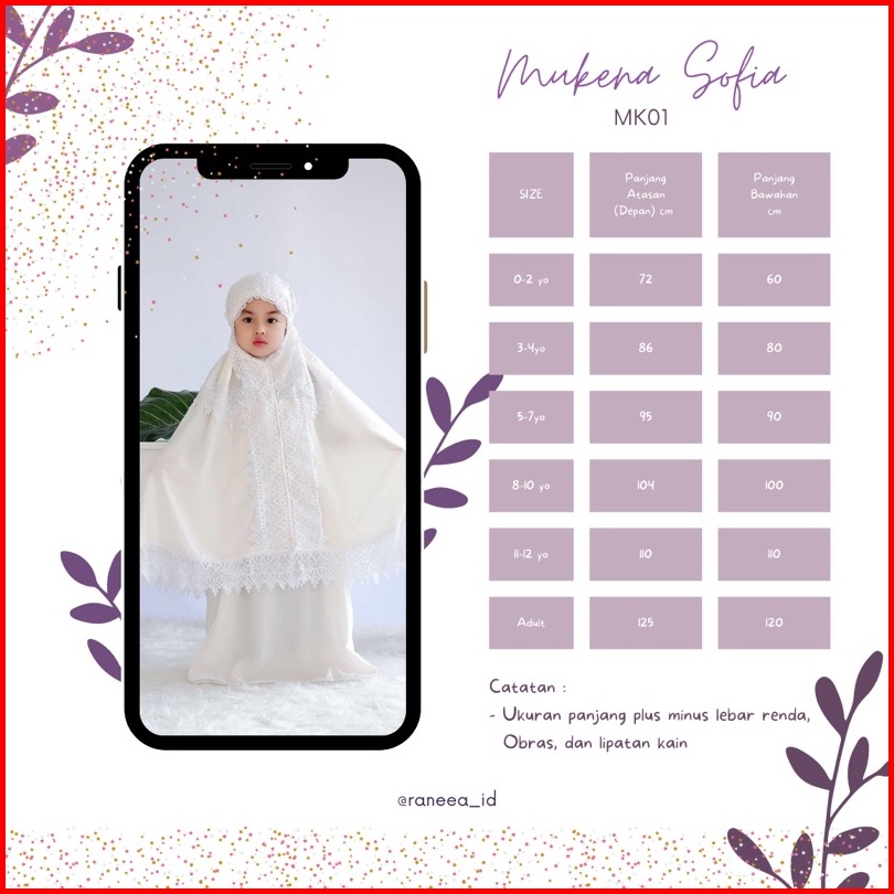Raneea - Mukena Sofia Anak Mukena Bayi Mukena Dewasa Mukenah Premium Mukenah Sofia Mk01