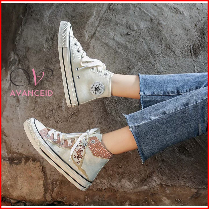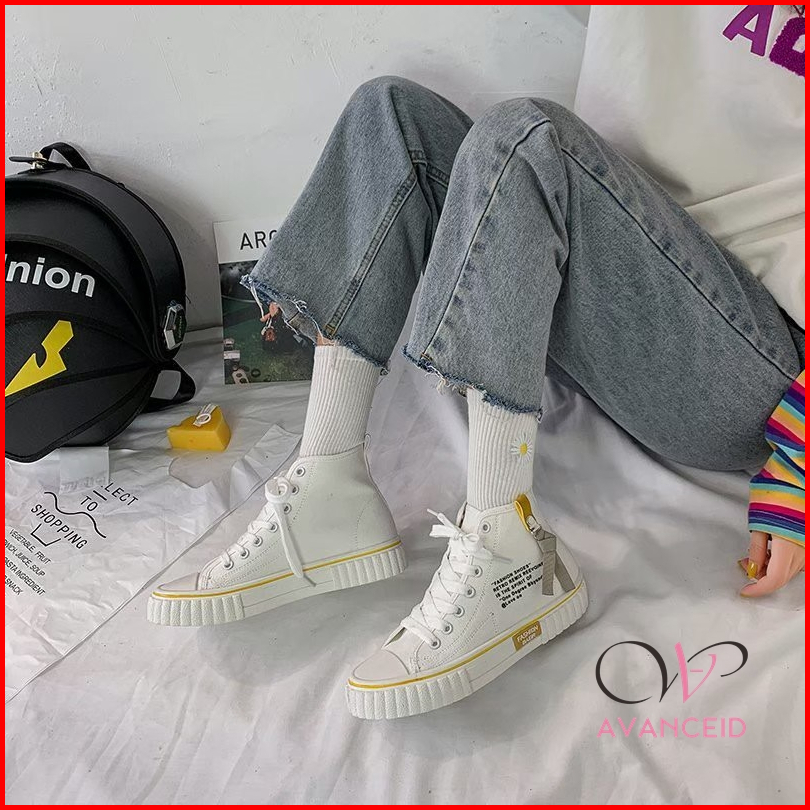 Avanceid 1938 Sepatu Sneakers Boots Wanita Canvas Kerja Sekolah Hitam
