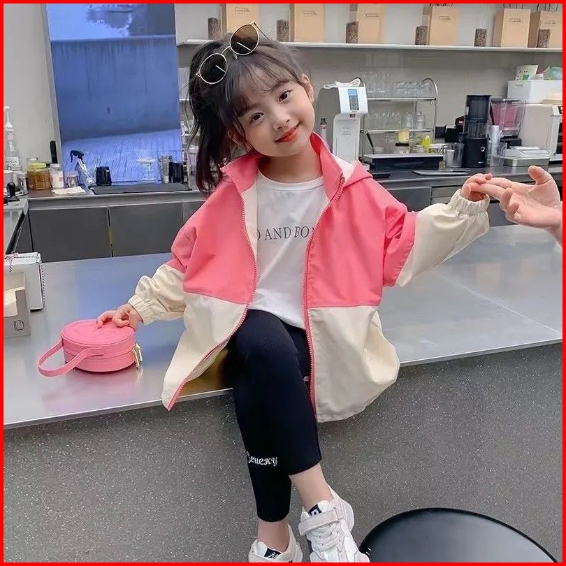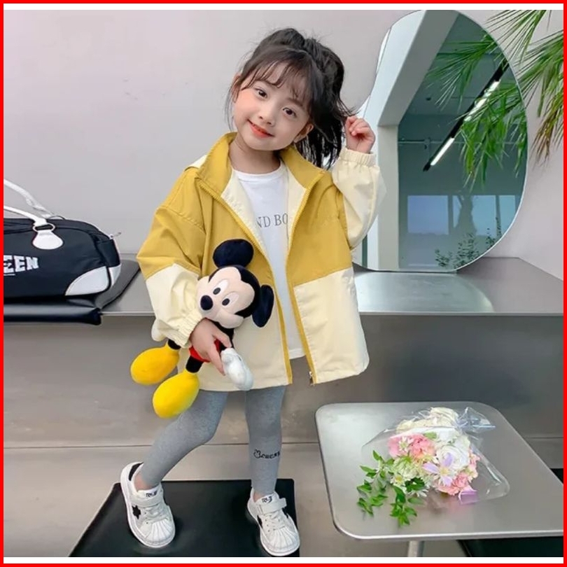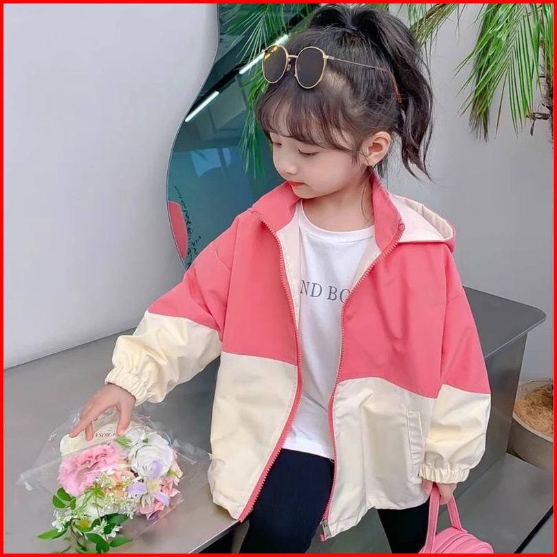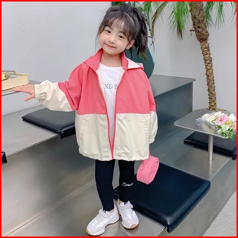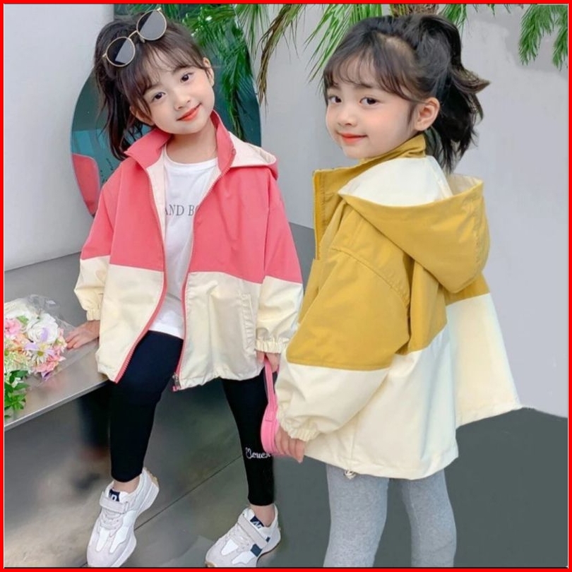 Smoothyears Jaket Windbreaker Kombination Anak Perempuan Jacket Coat Reguler Anak-anak Unisex 1-12 Tahun