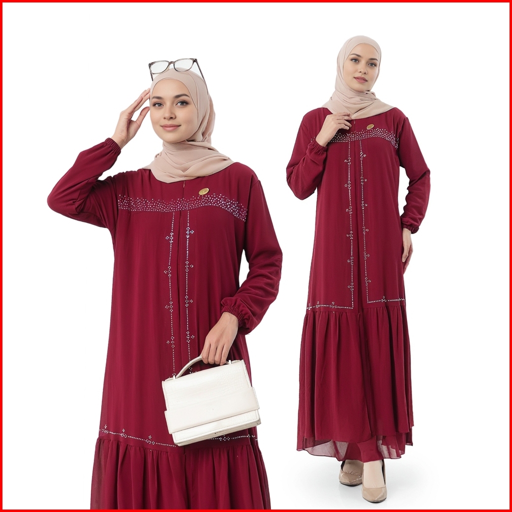 Adiva Maxi Baju Gamis Bahan Ceruti Babydoll Mix Swaroski Dress Kondangan Mewah Elegant Ukuran Xl Xxl