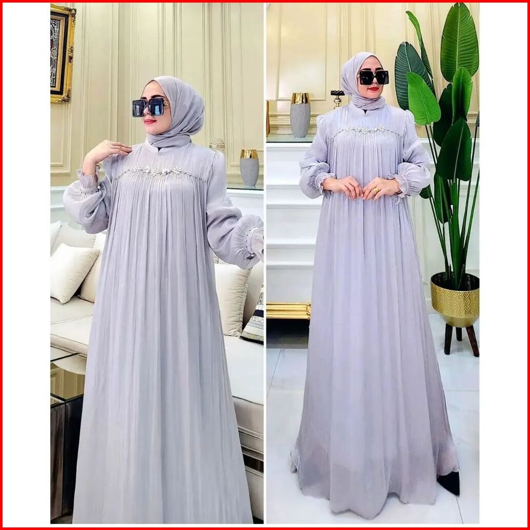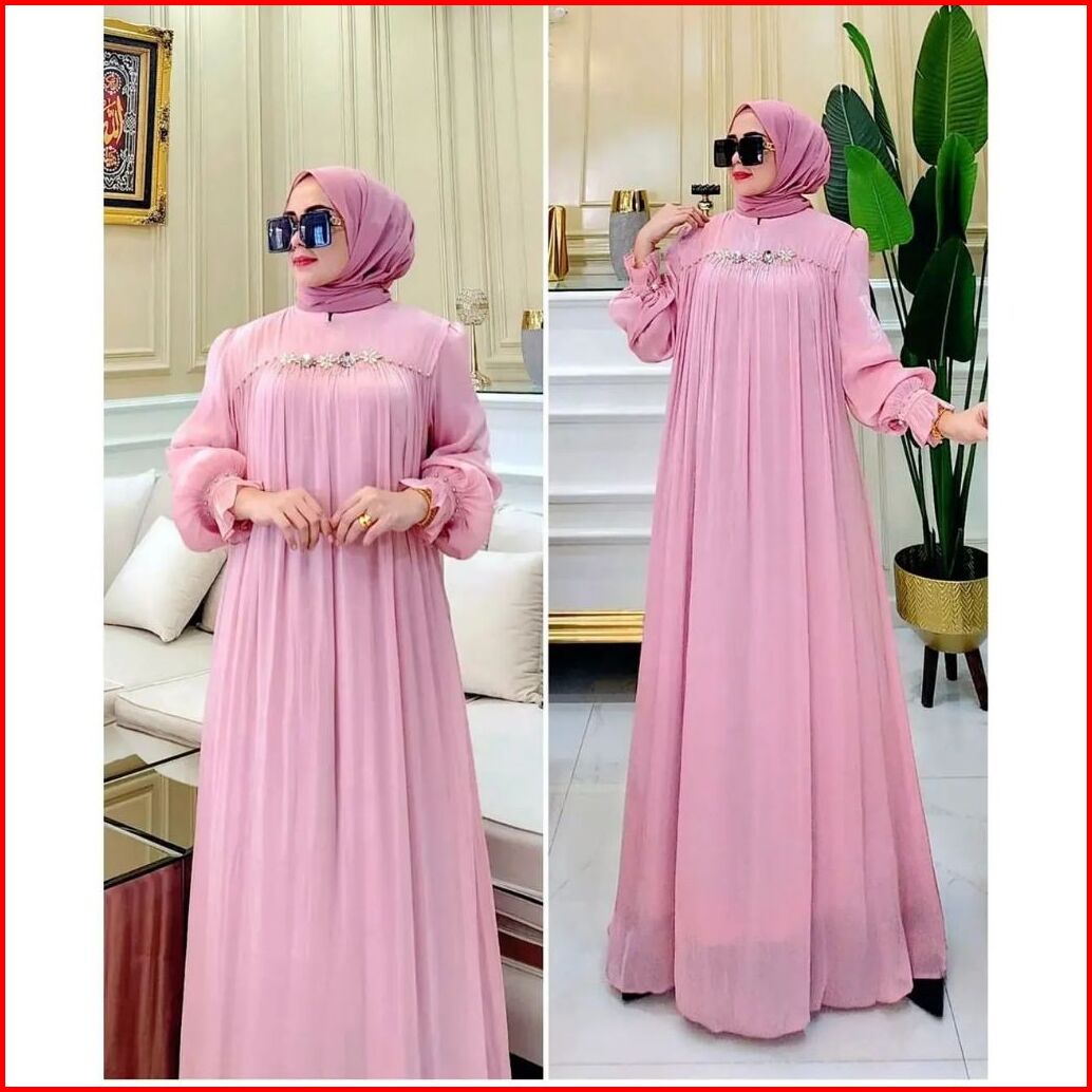 Sandrina Gamis Ceruty Babydoll Jumbo Aplikasi Payet Mutiara Premium Gamis Payet Mewah Kekinian S Xxl