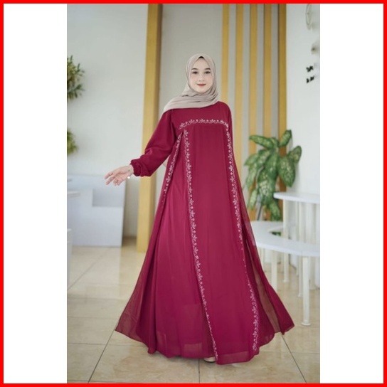 Baju Gamis Perempuan Dewasa Ceruty Babydoll Payet Full Puring S M L Xl Xxl