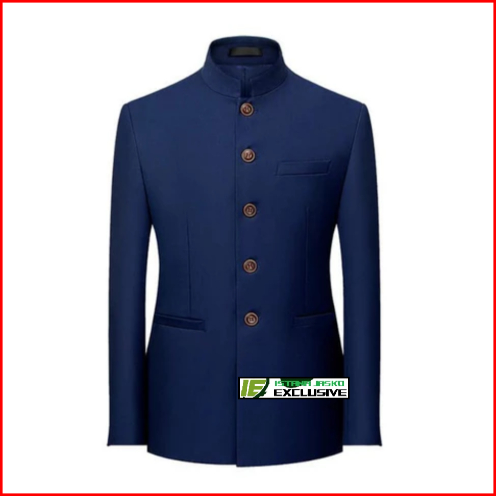 Jasko Polos Jas Koko Pakaian Muslim Pria Bahan Hightwis Milenium Tebal Halus Dongker D-77