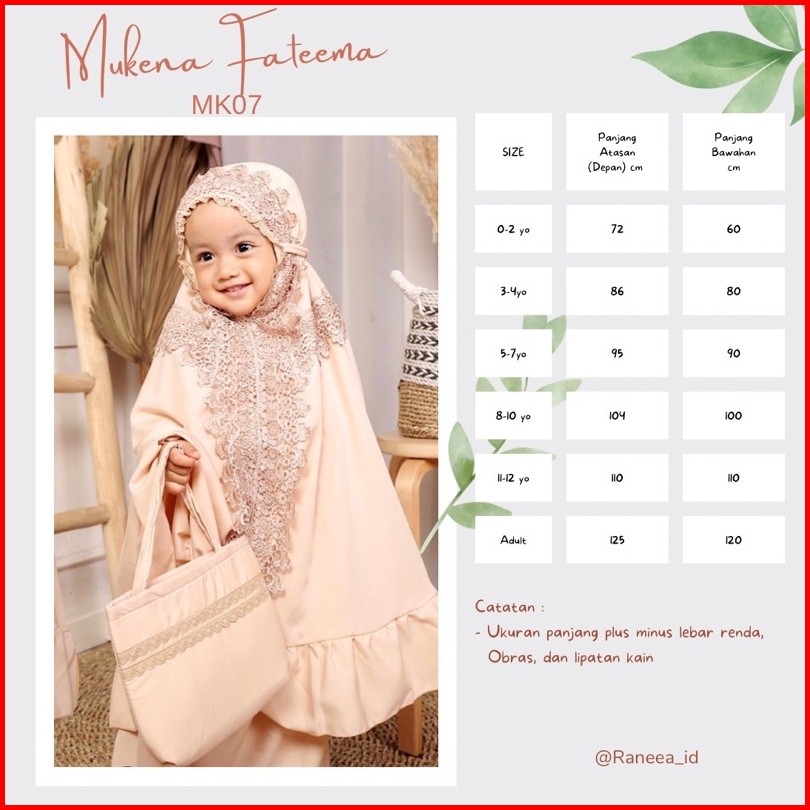 Raneea - Mukena Fateema Alat Sholat Anak Premium Mukenah Anak Premium Mk07