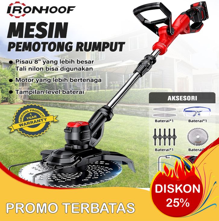 IRONHOOF 588V Mesin Potong Rumput 88V Pemotong Rumput Listrik Pemangkas Rumput dengan Baterai Li-ion