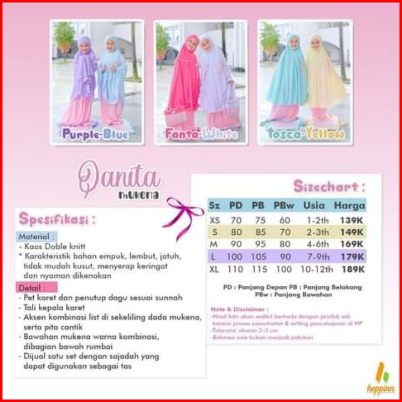 Mukena Anak Qanita Karina Ermina 3 Ermina 4 By Heppin Mukena Anak Set Sajadah Tas