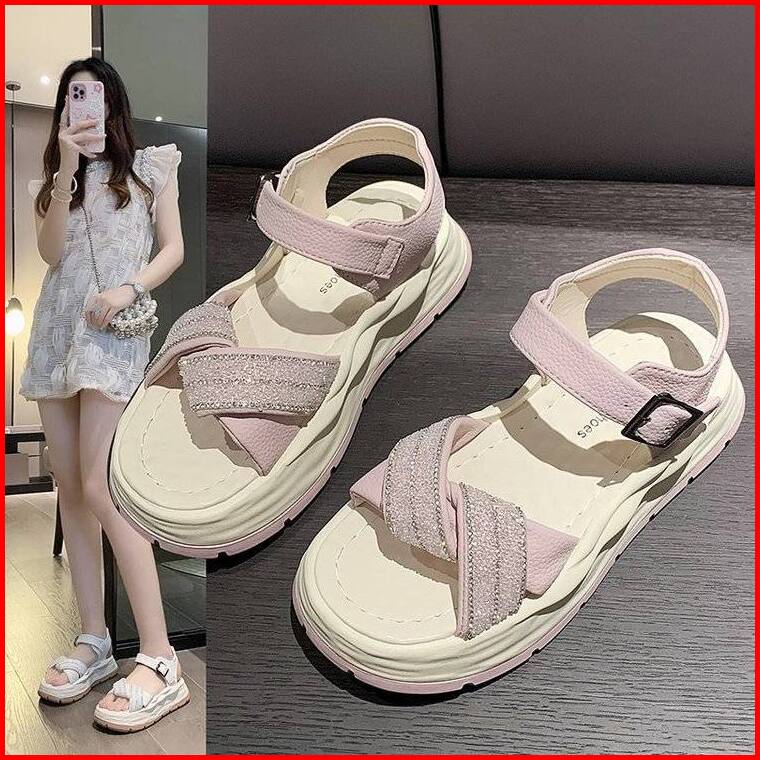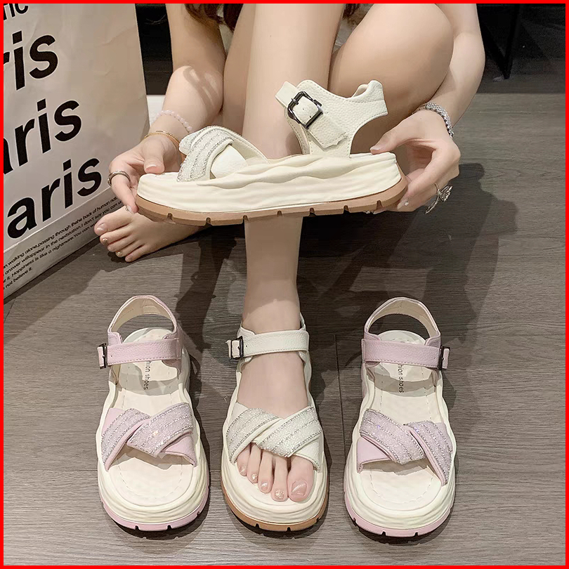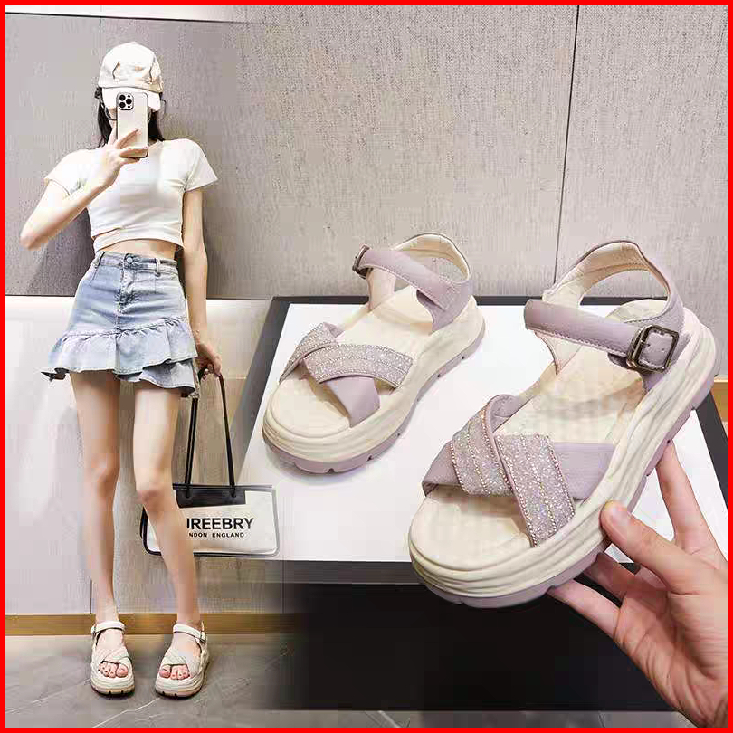 Sandal Slide Glitter Elegant Wanita Sandal Tali Gesper Pergelangan Kaki