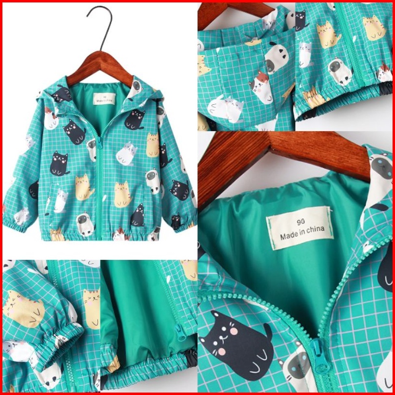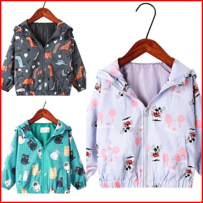 Jaket Parasut Anak Unisex Import Jaket Anak Cat Dino Mickey Hoodie Zipper