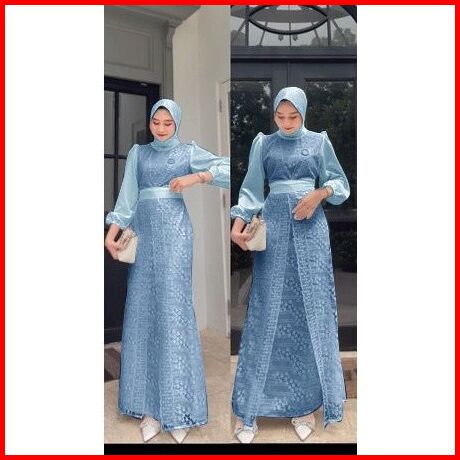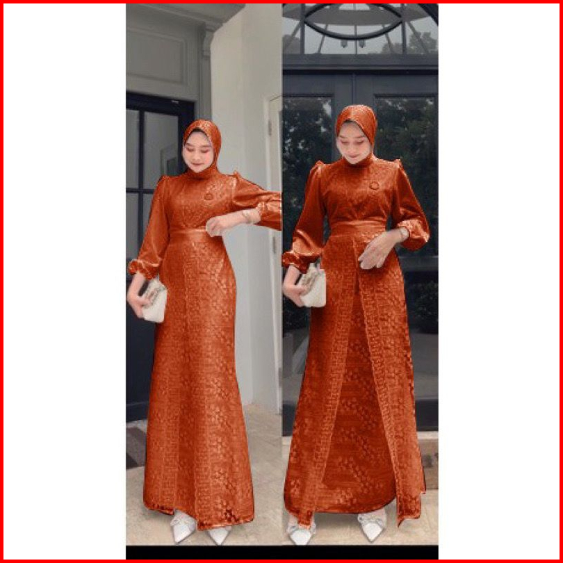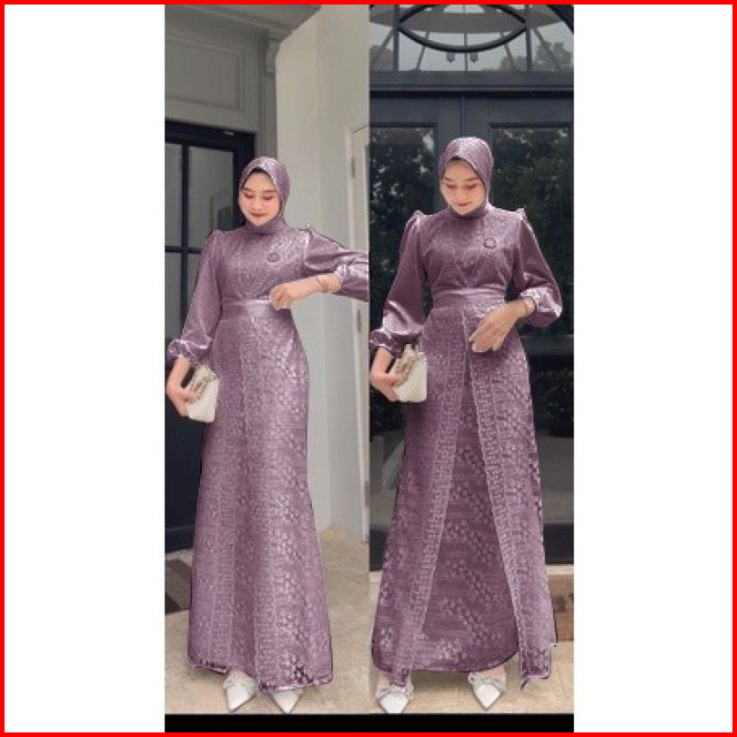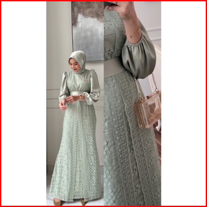 Terbaru Malikka Gamis Brukat Mewah Maxi Dress Kekinian Seragam Kondangan Fashion Muslim Jumbo