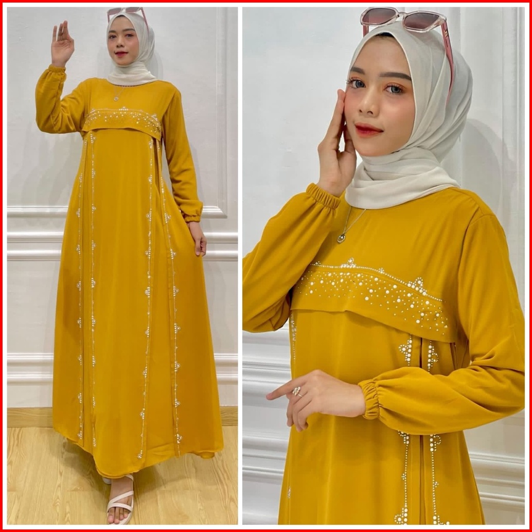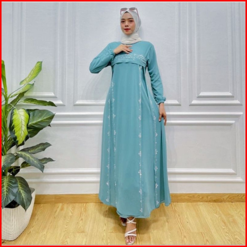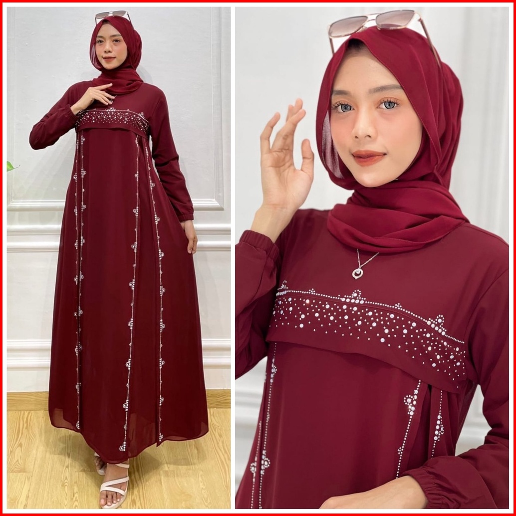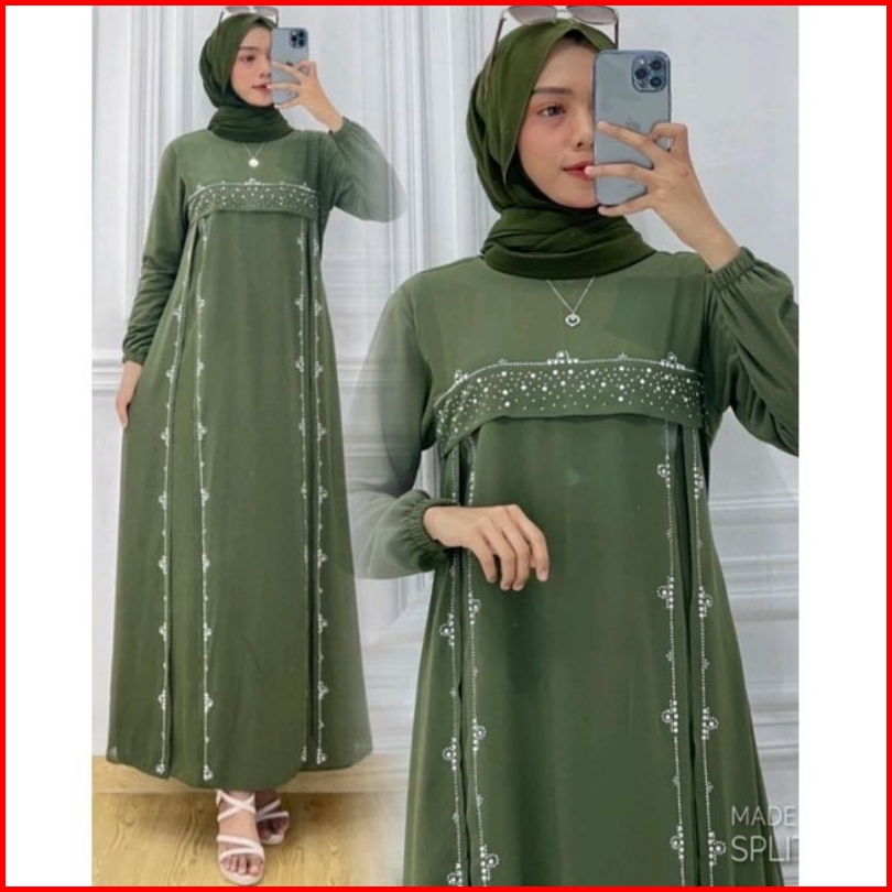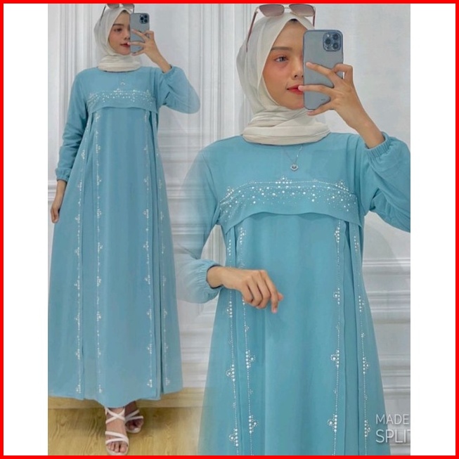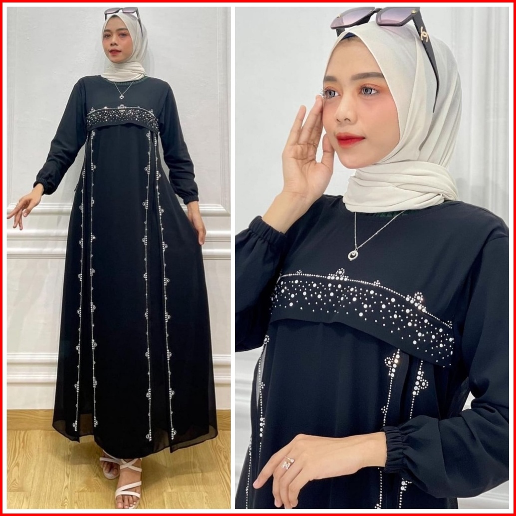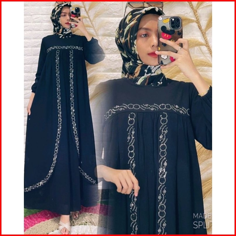 Gamis Ceruty Babydoll Mix Kombinasi Swaroski Belah Sallindra Payet Dress Premium Seragam Seragaman Baju Fashion Wanita L