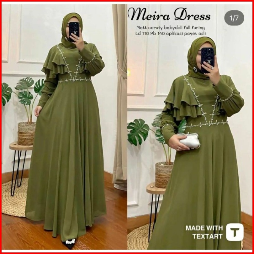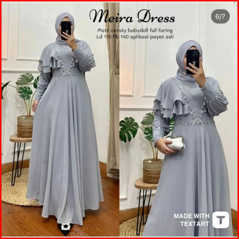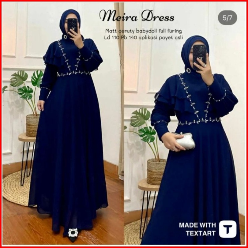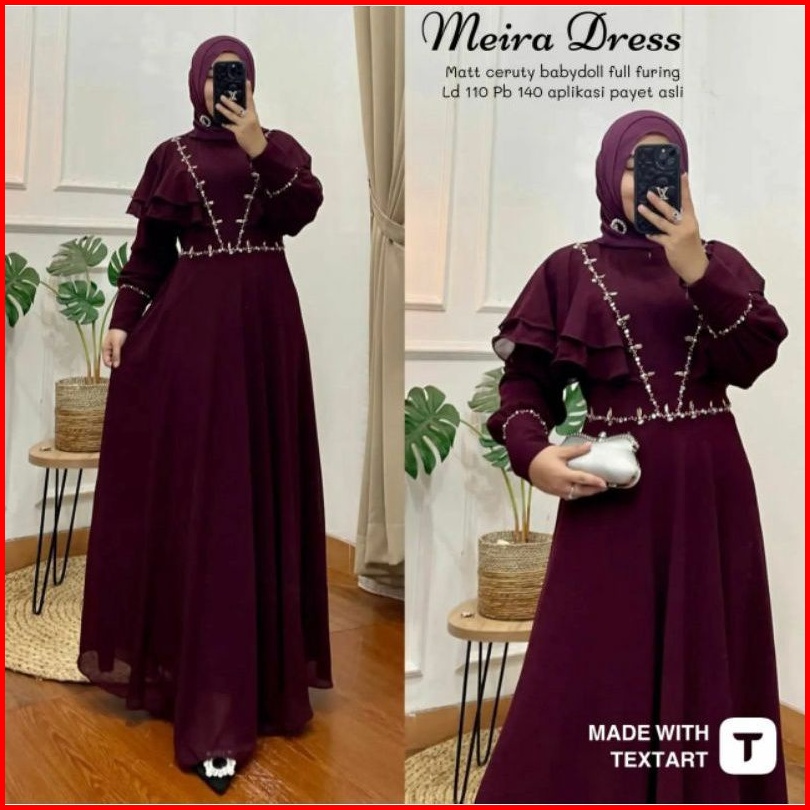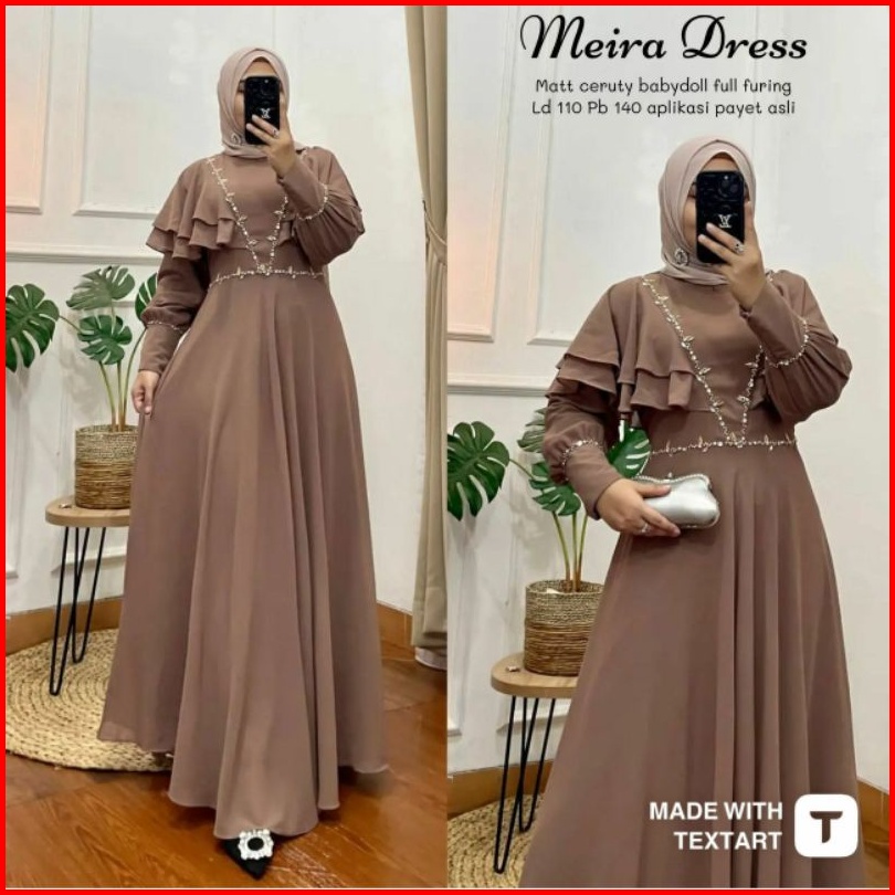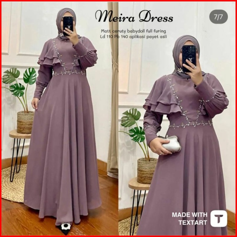 Ready Termurah Meira Dress Ceruty Bebidol Aplikasi Payet Syar I Set Hijab Pasmina Gamis Kekinian Trend 2023
