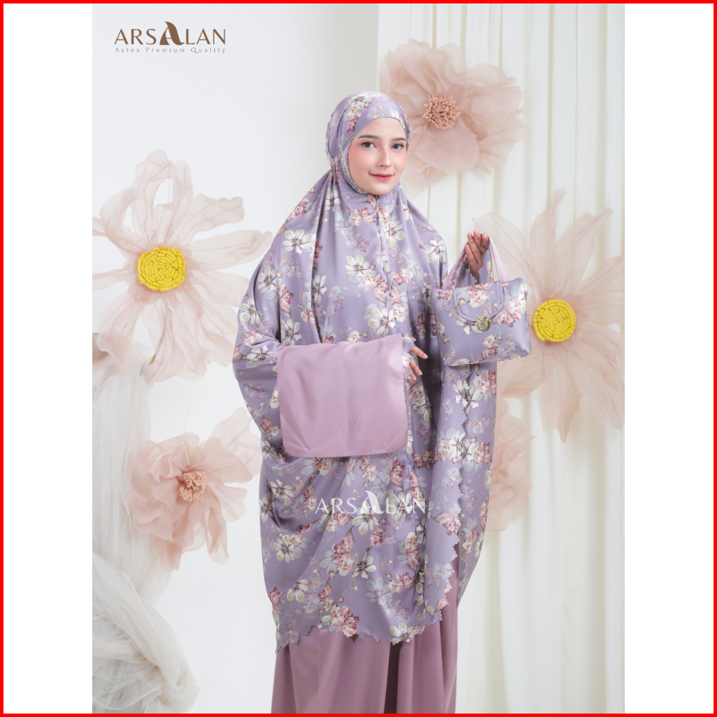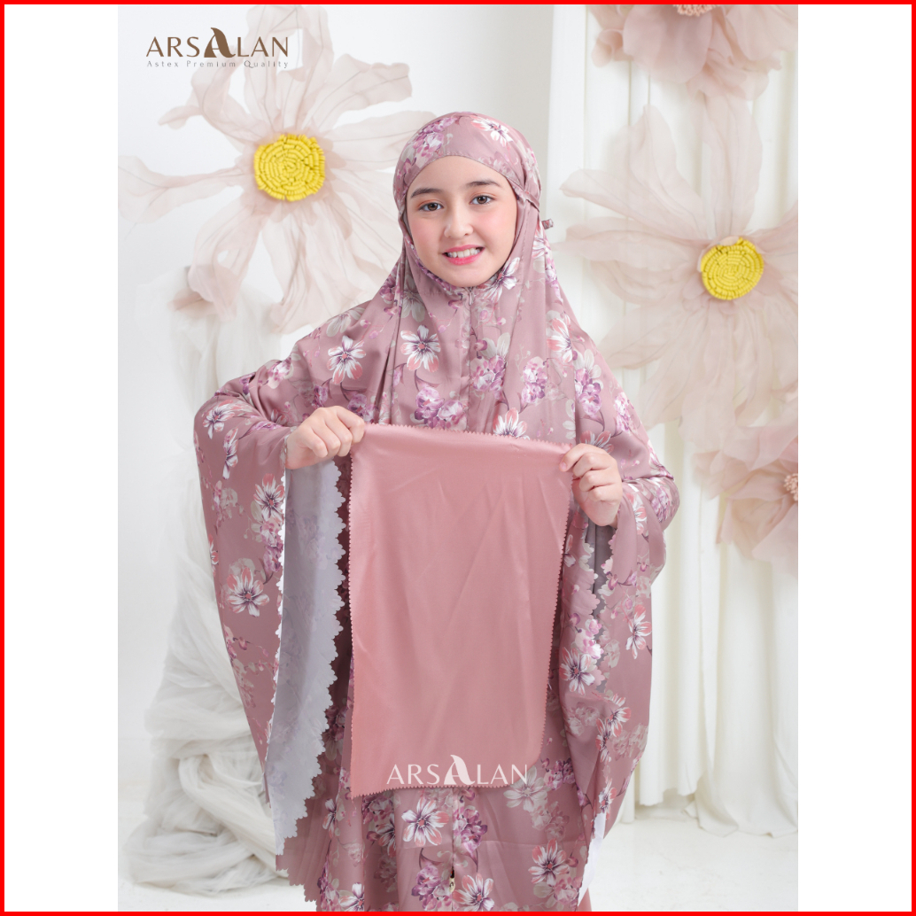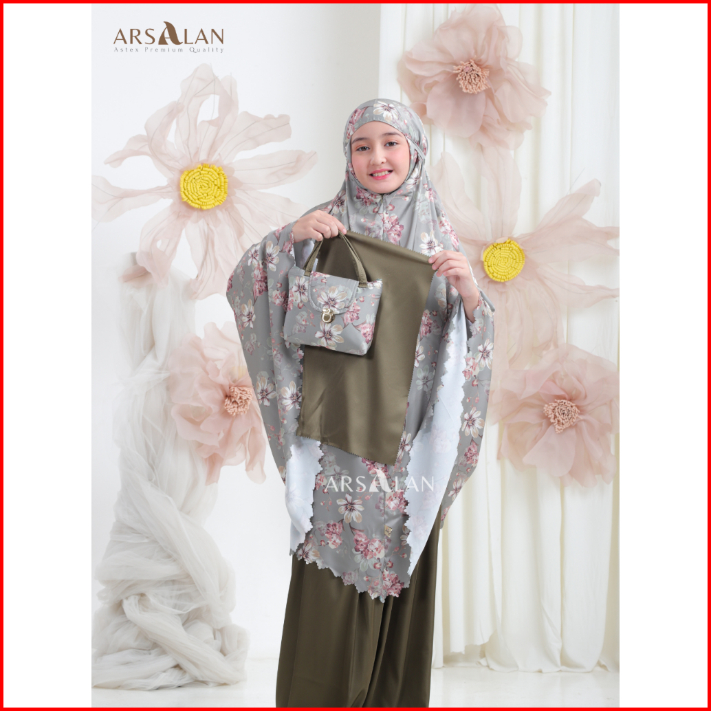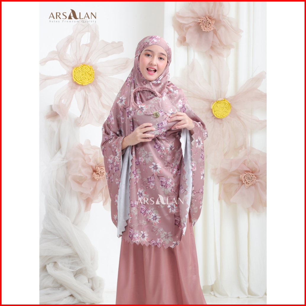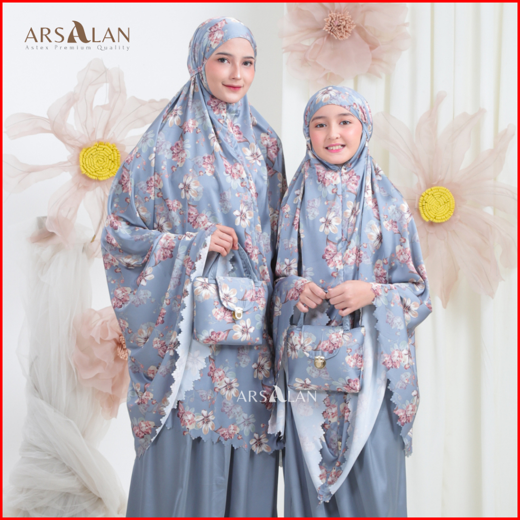 Arsalan - Mukena Anak Dan Mukena Dewasa Armani Silk Premium Couple Laser Cut Traveling 2in1 Freesia Series