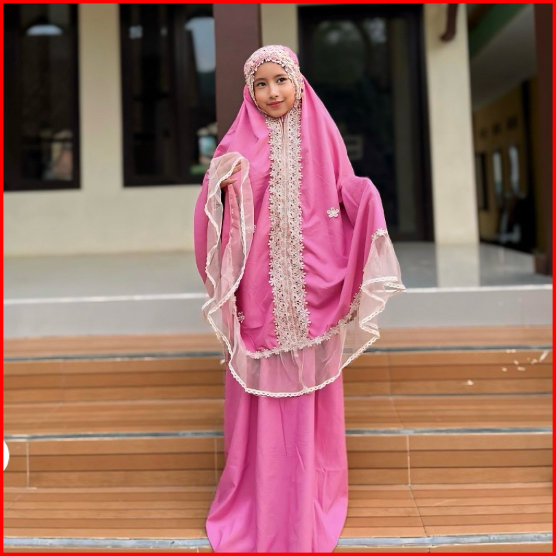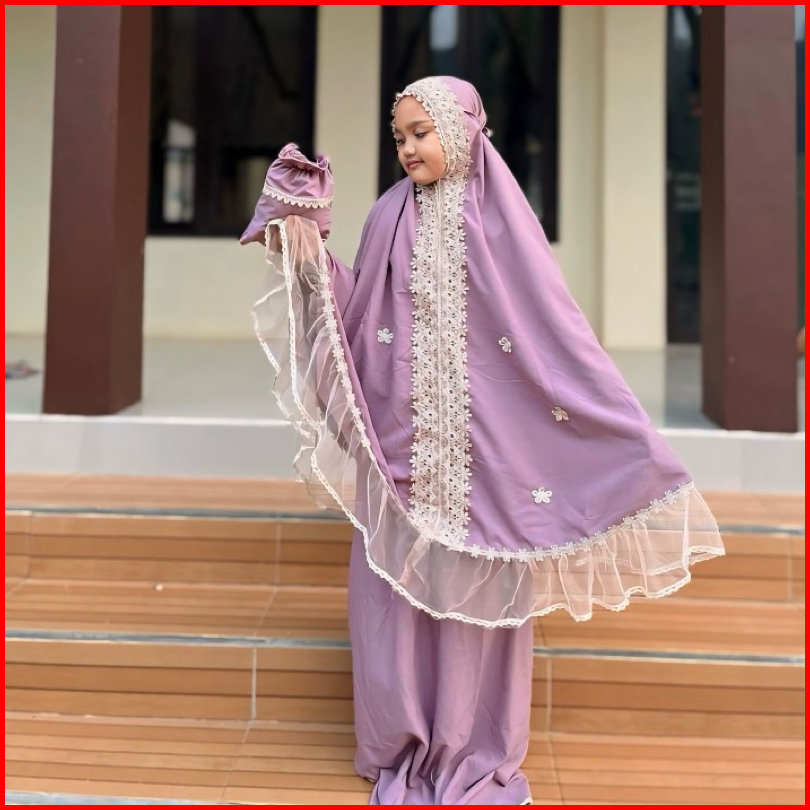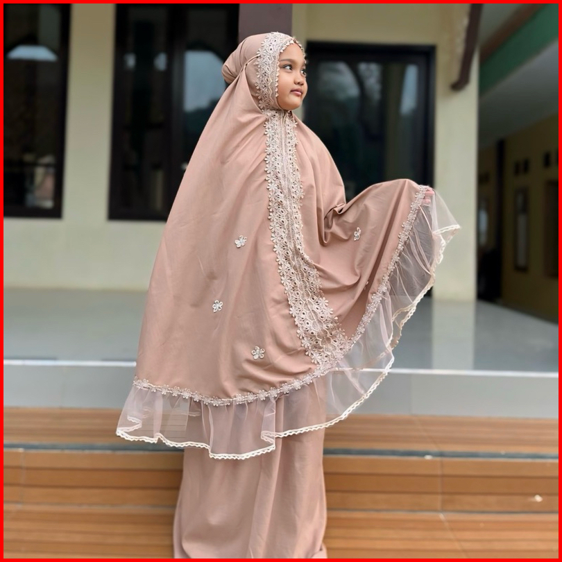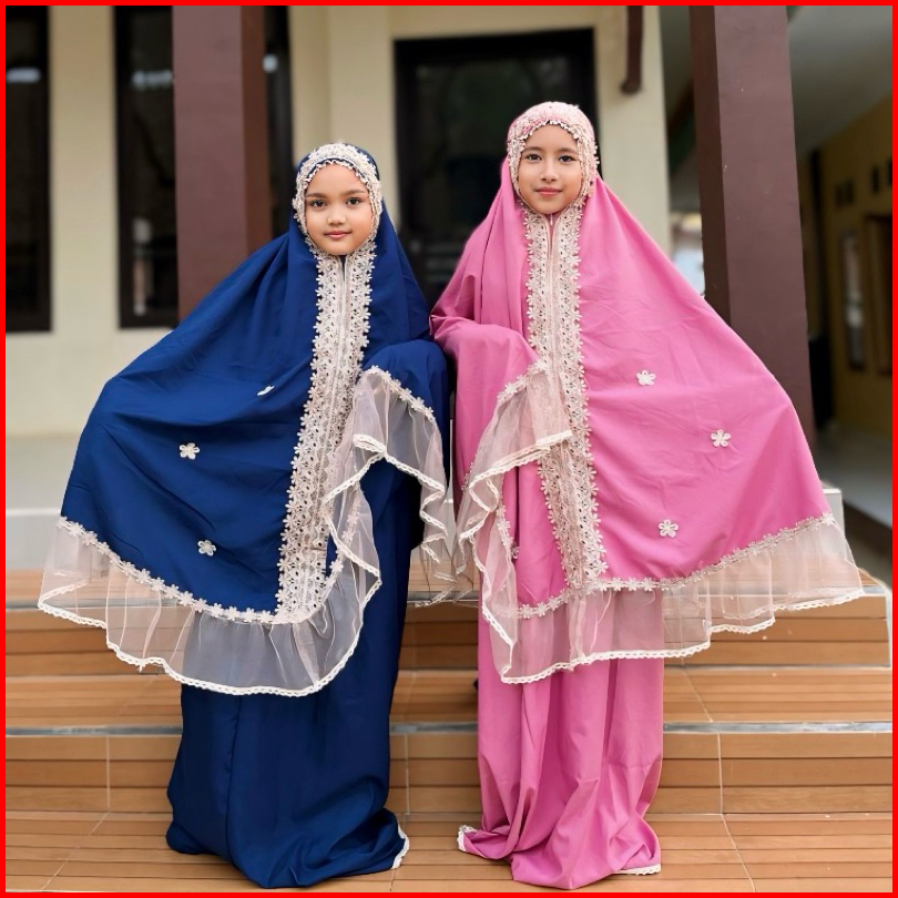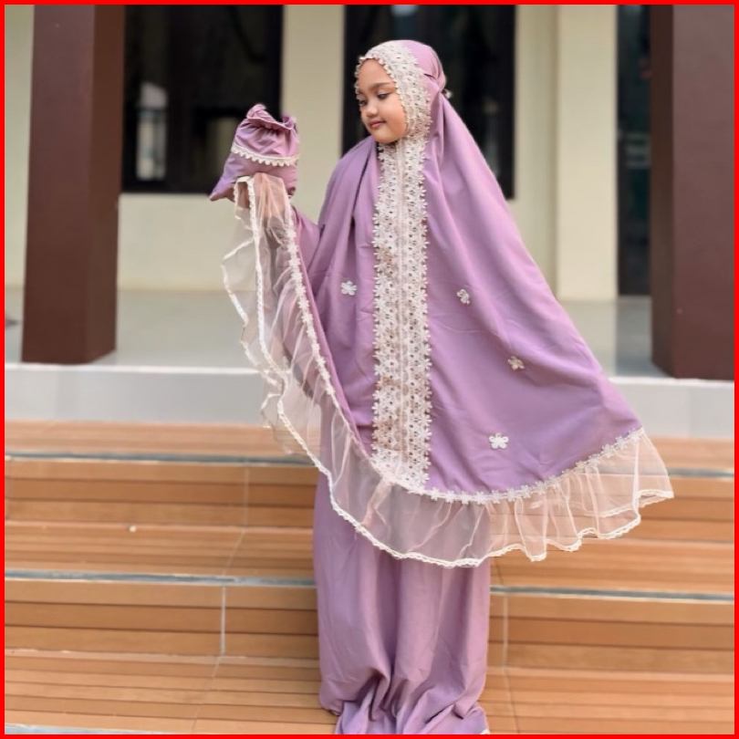 Mukena Kayla 2in1 Mukena Anak Bahan Katun Mikro Premium Renda Tille Brukat Mewah Usia 5-12 Tahun