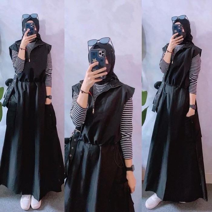 SETELAN WANITA ONE SET TERBARU KOREAN STYLE ATASAN DAN ROK CASUALHITAM ALL SIZE