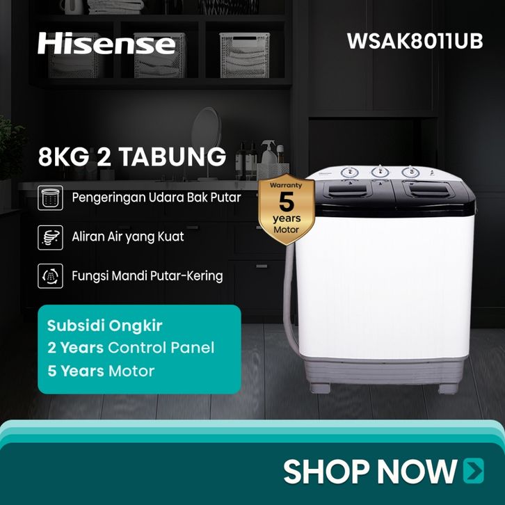 Mesin 2 Tabung Hisense Mesin Cuci 2 Tabung Top Loading 8 KG Washing Machine WSAK8011UB