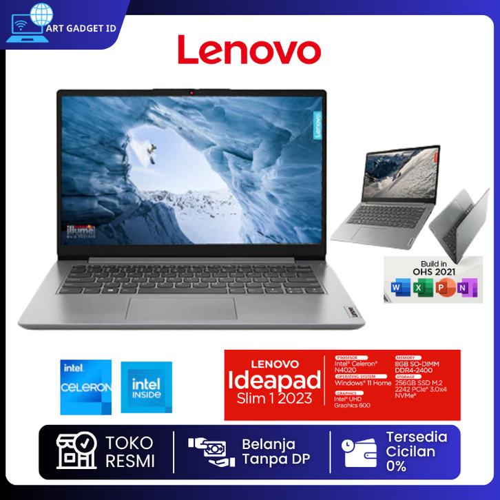 LAPTOP LENOVO IDEAPAD SLIM 1i INTEL N4020 8GB RAM 512GB SSD WINDOWS 11 OHS 14 INCH HD LAPTOP ORIGINAL