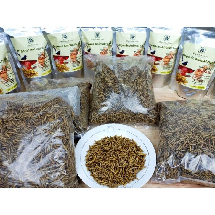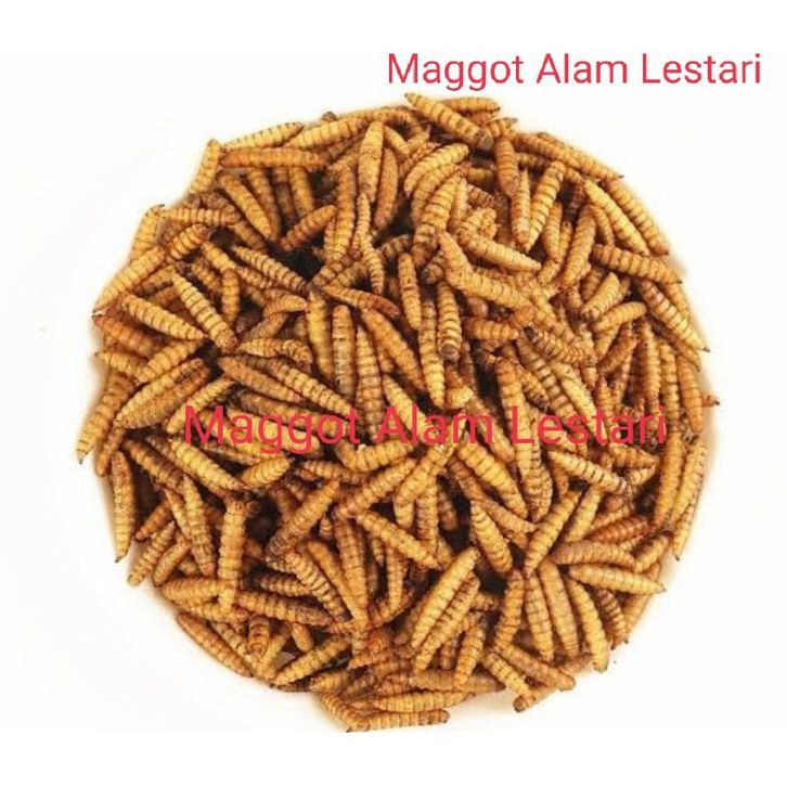 Magot kering 1kg Grade A++ maggot kering Berkualitas pelet koi Chana Barca channa murai predator protein 40% Beta Caroti