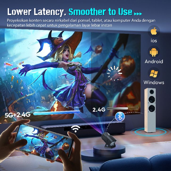 XGODY GIMBAL 5 MIN Smart Proyektor 1080P Support 4K 350 Ansi Lumens Android 11.0 WiFi6