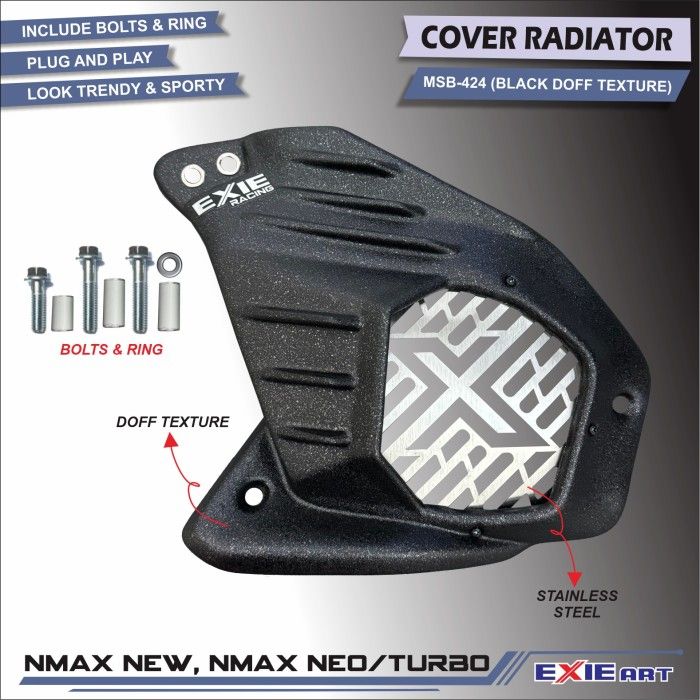 cover motor Cover Radiator Nmax Neo Turbo - Cover Pelindung Radiator Nmax New Exie Art - HITAM DOFF TEXT