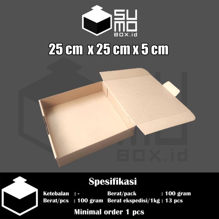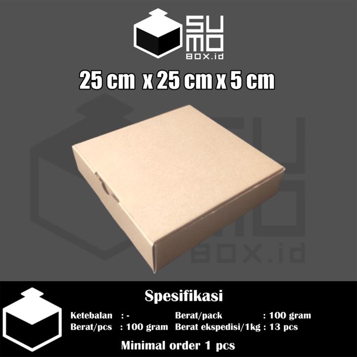 PROMO 50 PCS Dus Pizza Polos 25x25x5 Cm / Gift Box Coklat Die Cut Kraft Baju Kue