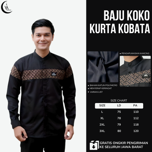 BAJU KOKO PRIA DEWASA KOBATA KEMKO KEMEJA KURTA LENGAN PANJANG TAKWA PRIA KATUN