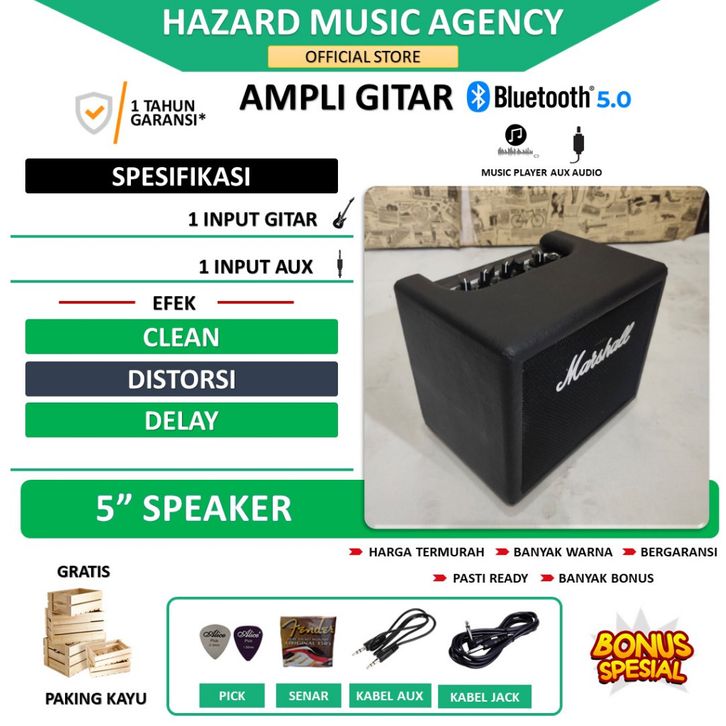 [Mall] Ampli Gitar Listrik / Ampli Gitar Dan Ampli Bass 5 Inch Marshall 2 Input Plus Efek Distorsi & Aux Termurah