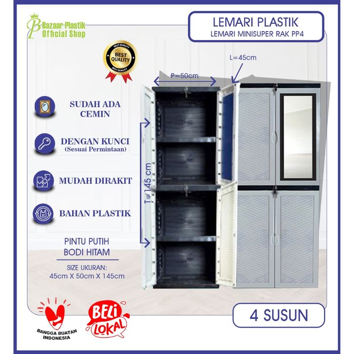 Lemari 4 Pintu Panjang / Lemari Plastik Pakaian / Lemari Pakaian Plastik Super 4 Pintu