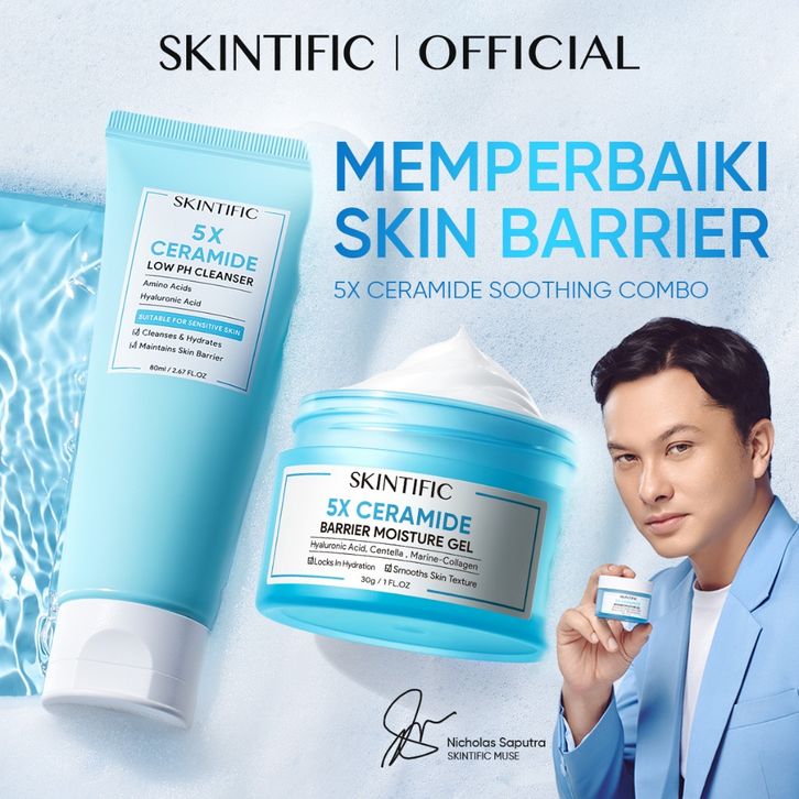 Moisturizer Skintific Paket Skincare 2In1 Barrier Set | 5X Ceramide Low pH 5.5-6 Cleanser Soothing Calming Gel Pelembab