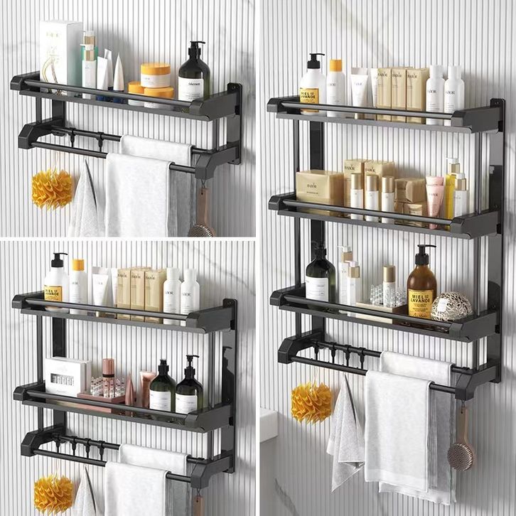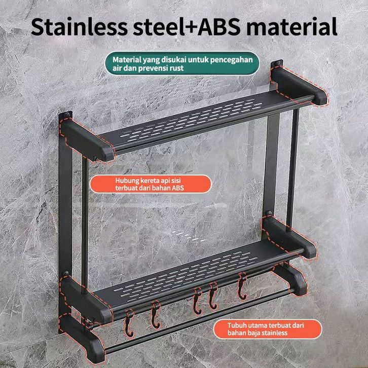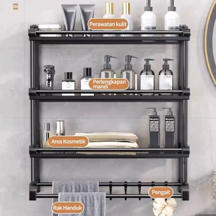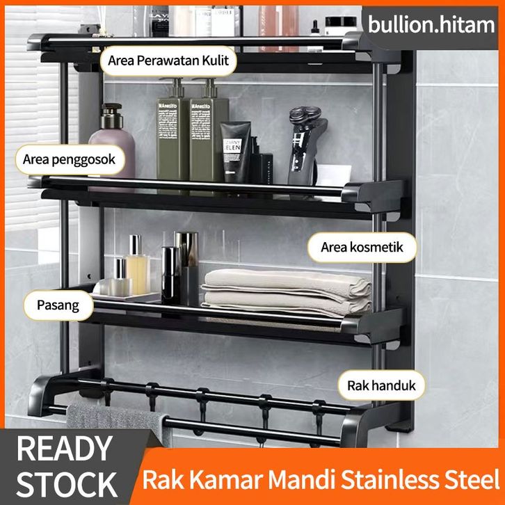 Gantungan Kamar Mandi Rak Kamar Mandi Stainless Hitam Rak Sabun Kamar Mandi Rak Handuk Kamar Mandi Tempel Rak Multifun