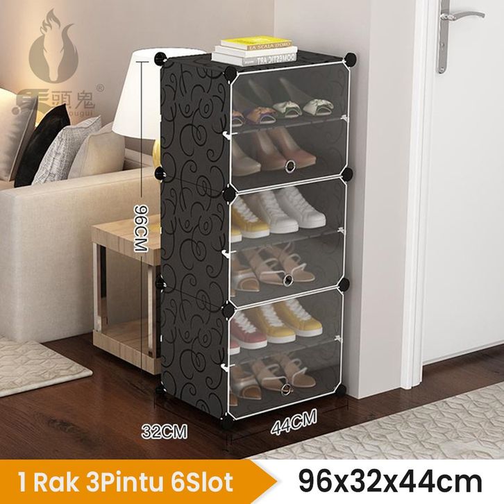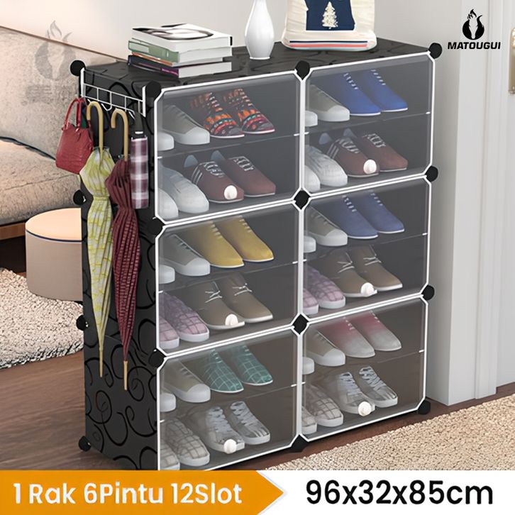 MATOUGUI - Rak Sepatu DIY Portable Lemari Plastik Premium Praktis MultiLayer Edisi Hitam