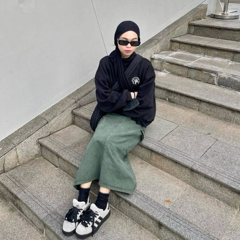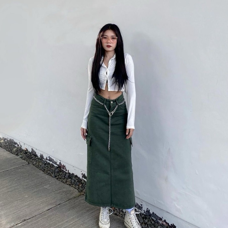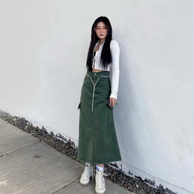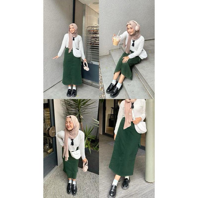 celana jeans wanita jumbo celana rok wanita GREEN SOLID celana rok wanita jumbo celana jeans wanita high waist