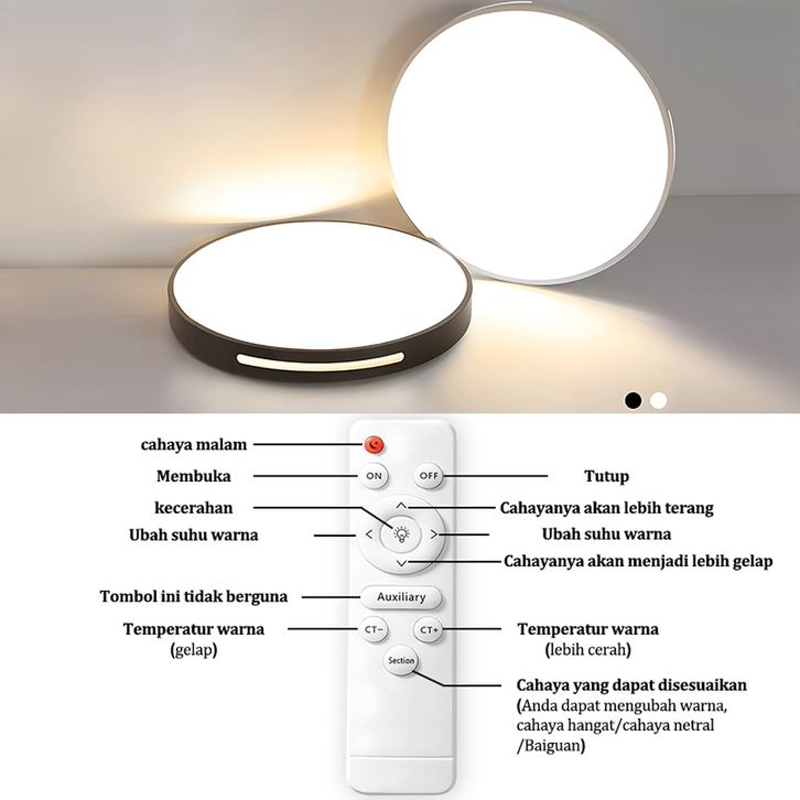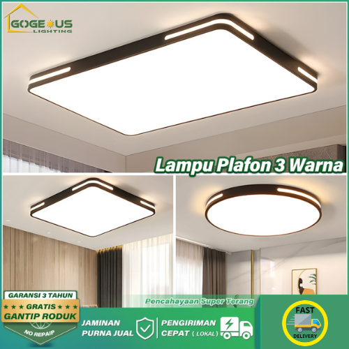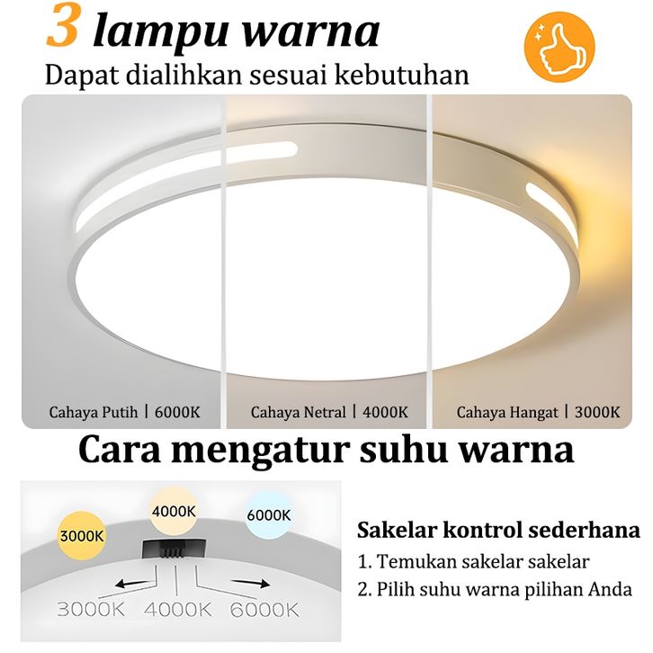 Lampu Plafon Aesthetic Minimalis Modern Gaya Bulat Pvc 36Watt LED 3 Warna Lampu Plafon Ruang Tamu Kamar Remote
