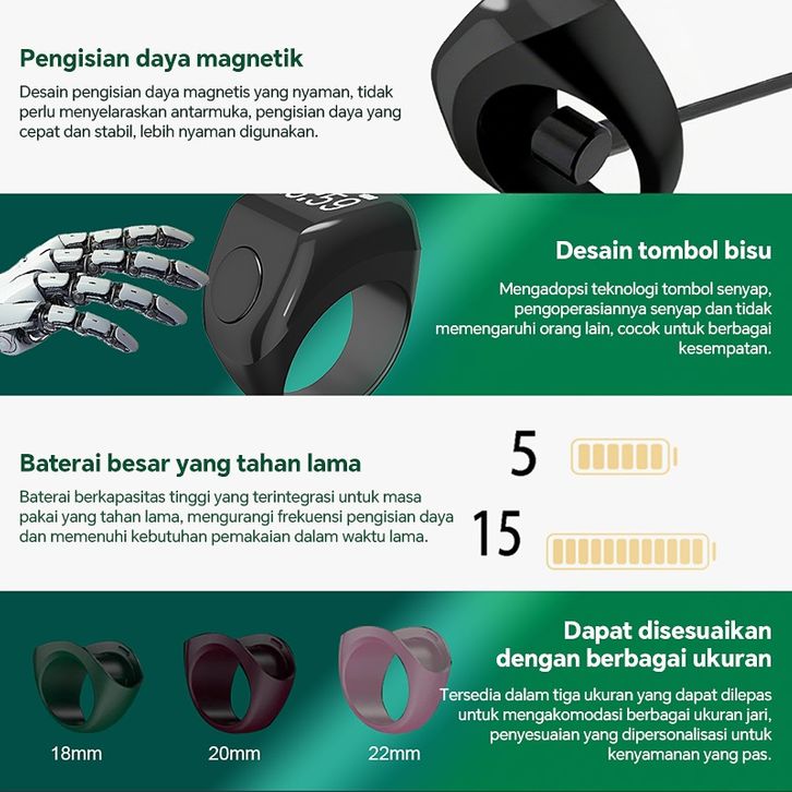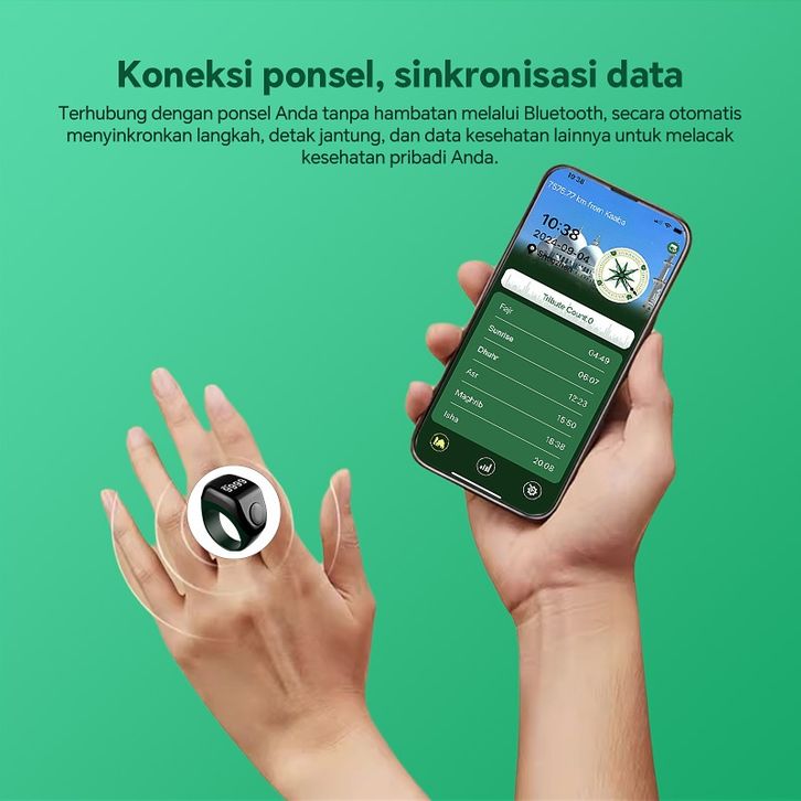 CINCIN TASBIH DIGITAL-HITUNG ZIKIR OTOMATIS CINCIN PEMANTAU DETAK JANTUNG DAN TEKANAN DARAH PEDOMETER BLUETOOTH