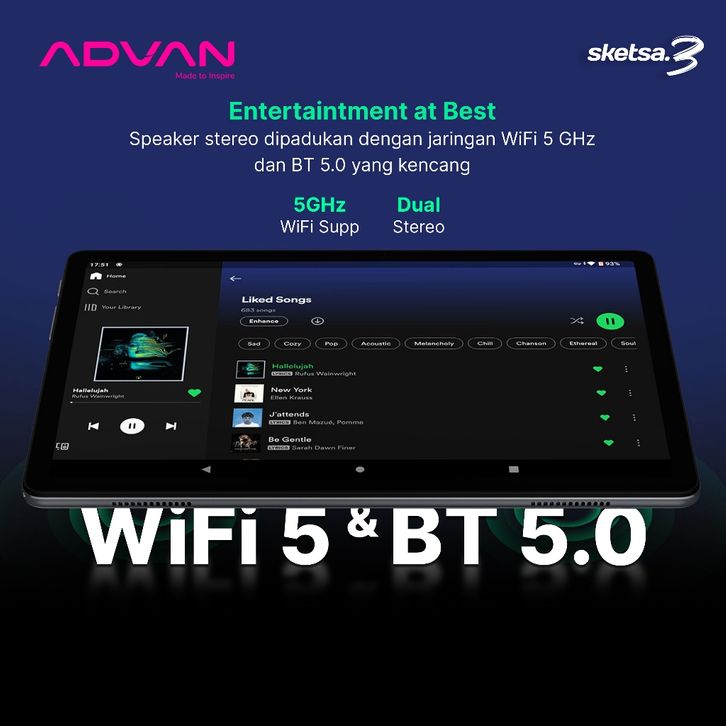 Advan Tab Sketsa 3 Layar 10.1” HD IPS 128GB+RAM 6GB Tiger T606 Android 13 Dual Sim Card