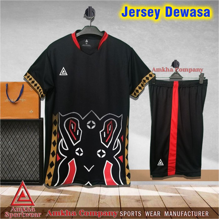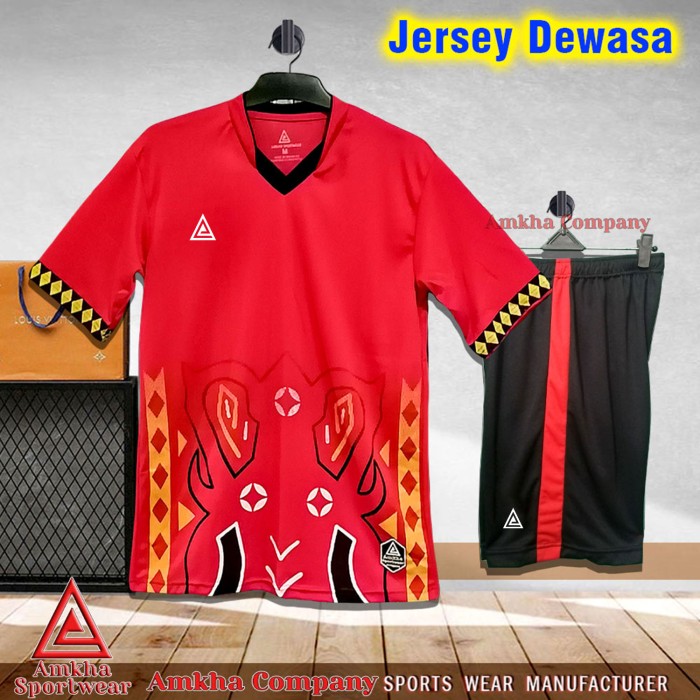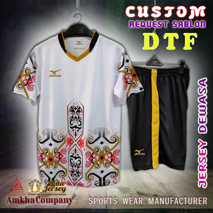 Baju Jersey Bola Pria Dewasa Setelan Kaos Olahraga Bola Futsal, Dayak - White_Brn, Jersey Polos