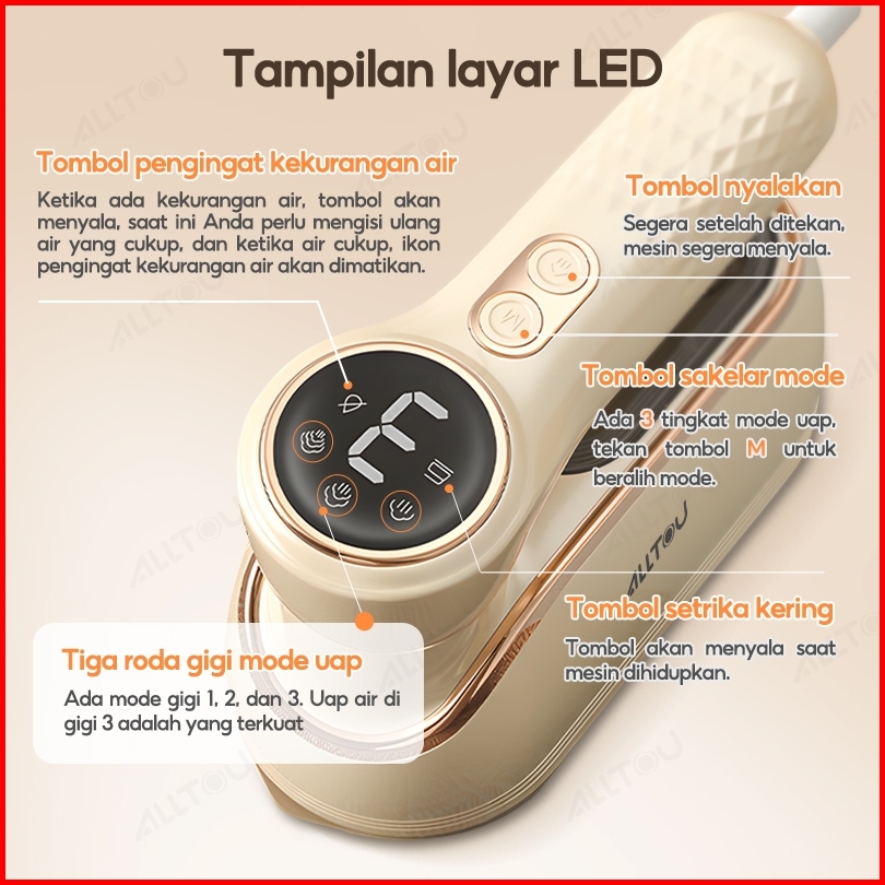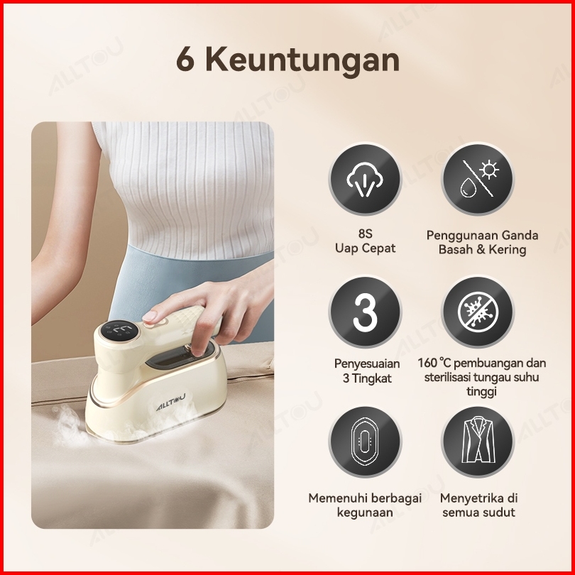 Alltou Setrika Uap Penyesuaian 3 Tingkat Setrika Portable 8s Pemanasan Steam Iron Hand Steamer