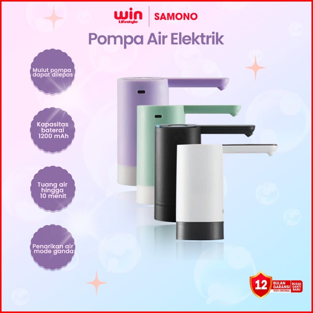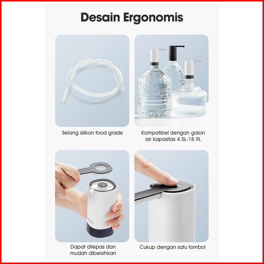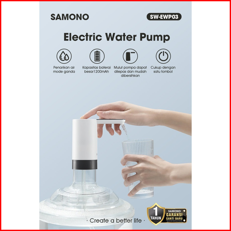 Samono Pompa Galon Otomatis 1200mah Rechargeable Pencetan Air Galon Anti Bising Pompa Air Galon Elektrik Sw-ewp03 - Gara