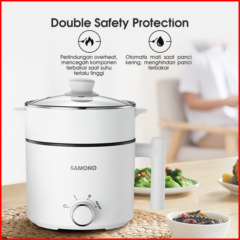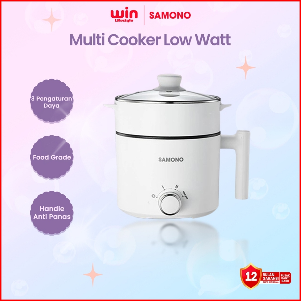 Samono Panci Listrik 1 5l Low Watt Steamer 150w 3 Tingkat Daya Kukusan Panci Anak Kost Multi Cooker Anti Lengket Sw Dg04
