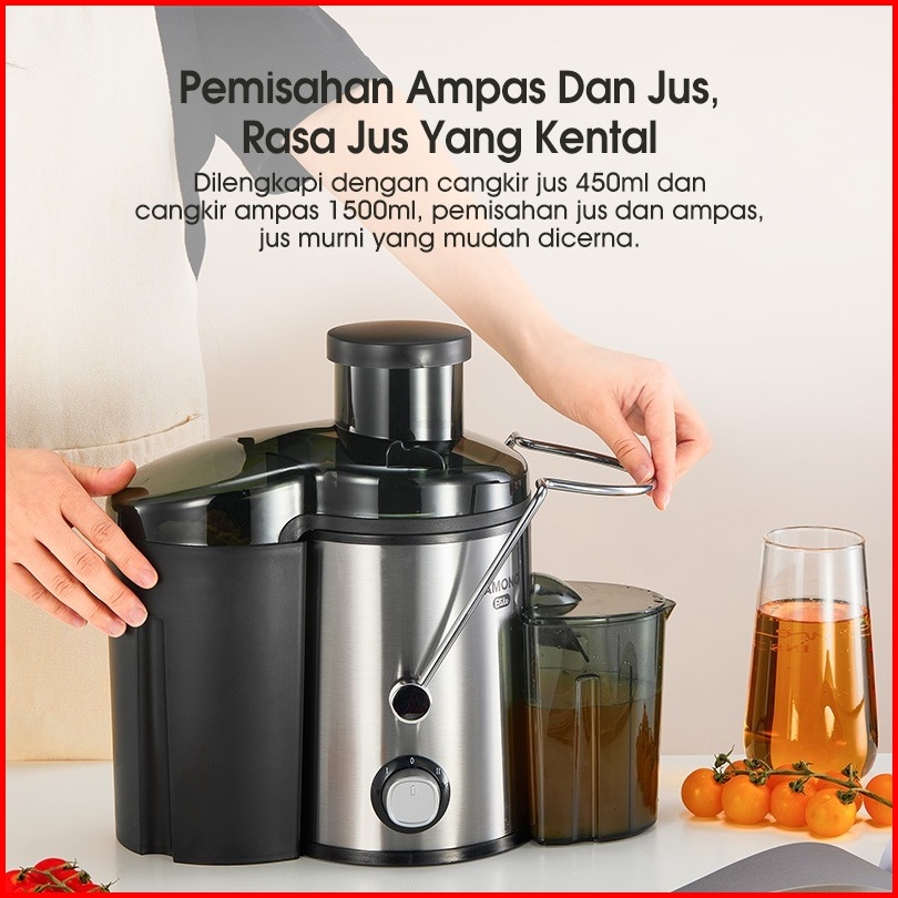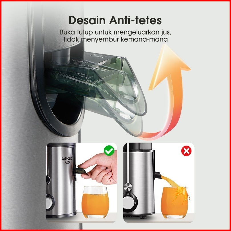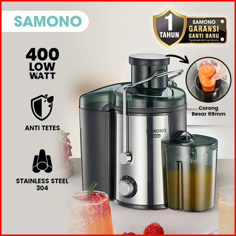 Samono Juicer Machine Pembuat Jus Buah Sayur Ekstrator Sw-je400 2 Tingkat Kecepatan Low Watt 400watt Food Grade Body Sta
