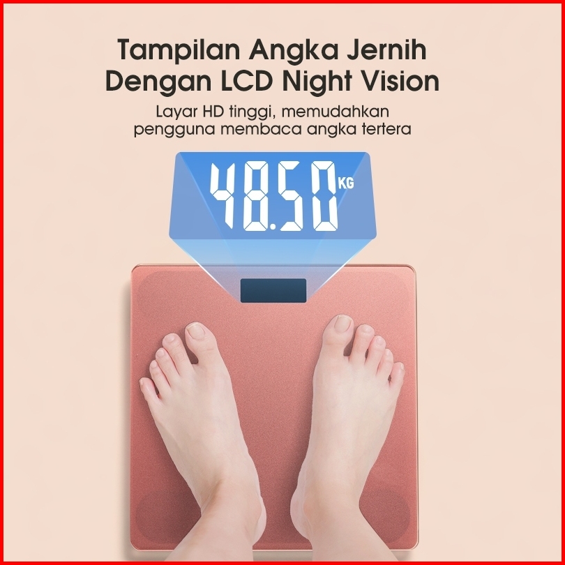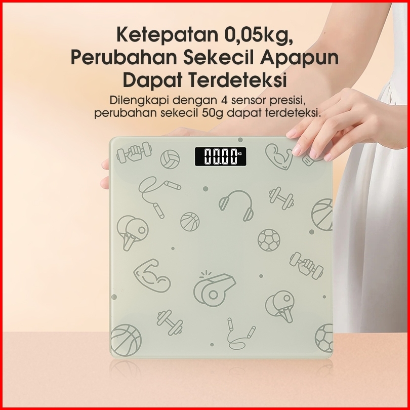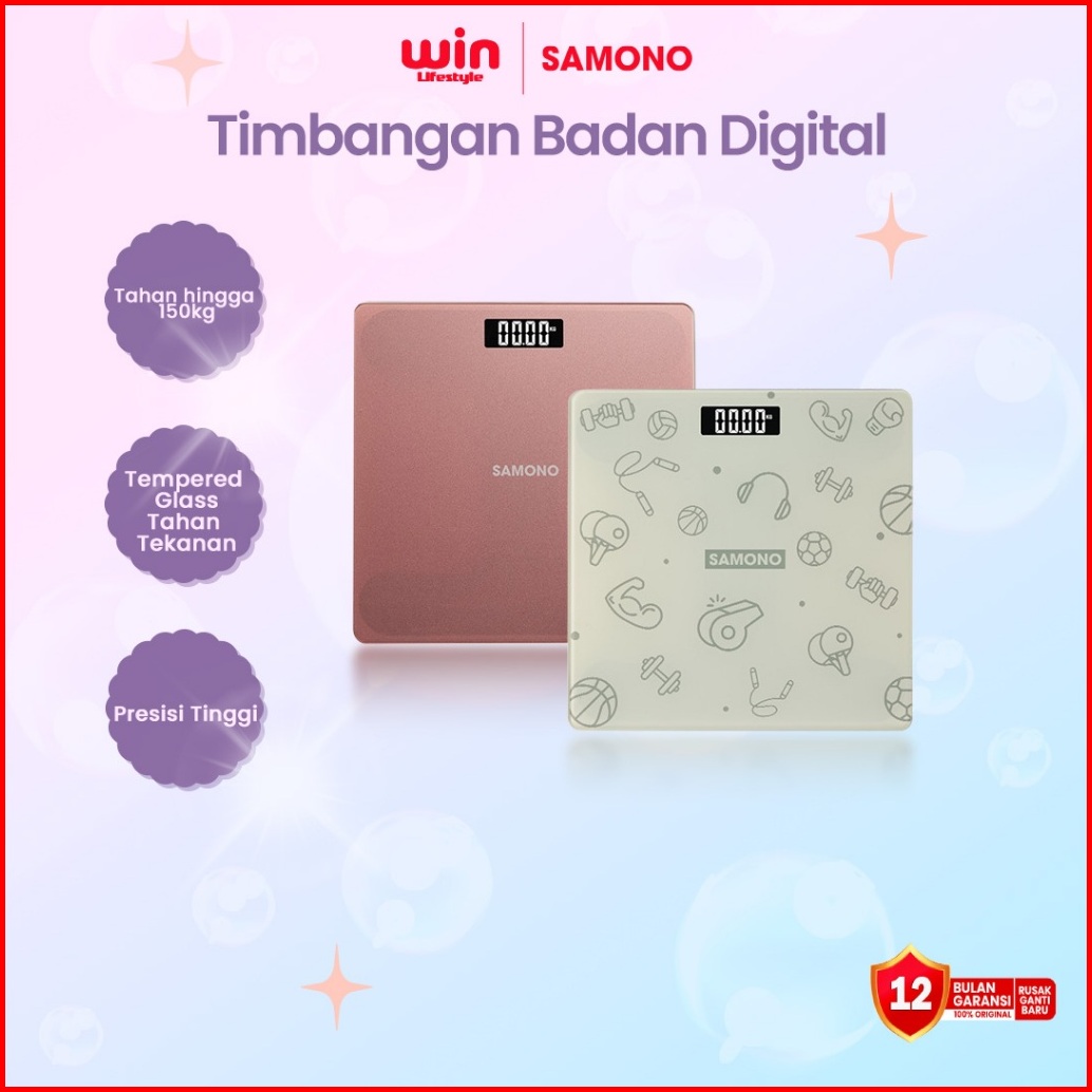 Samono Timbangan Badan Digital Kaca Body Scale Up To 150kg Presisi 0.05kg Layar Led 26cm X 26cm Penampil Suhu Otomatis G